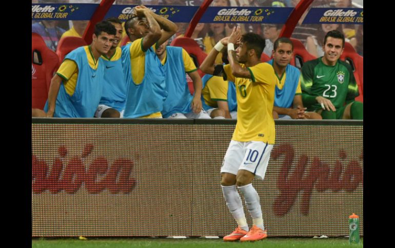 Deportes | Cuatro goles del brasileño pusieron la fiesta en el amistoso en Singapur Neymar aplasta a Japón Cuatro goles del brasileño pusieron la fiesta en el amistoso en Singapur Por: AFP 14 de octubre de 2014 - 07:09 hs SINGAPUR, SINGAPUR (14/OCT/2014).- Cuatro goles de Neymar permitieron a Brasil terminar su minigira asiática con una nueva victoria, este martes en Singapur contra Japón (4-0), tres días después de haberse impuesto en el Superclásico sudamericano a Argentina (2-0) en Beijing, con dos tantos de Diego Tardelli. El jugador del Barcelona, que había logrado antes dos tripletes con la Selección brasileña, alcanzó los 40 tantos con el equipo nacional, superando los 39 de Bebeto. El primer tanto brasileño llegó en el minuto 18 cuando Diego Tardelli, bigoleador en el Superclásico disputado el sábado en Pekín, dio un pase a Neymar, que dribló al portero japonés Eiji Kawashima para marcar a puerta vacía. Un minuto antes de marcar ese gol, Neymar había lanzado un tiro libre al larguero. El segundo tanto de Neymar llegaría al inicio del segundo tiempo, en el minuto 48, cuando Philippe Coutinho colocó un preciso pase adelantado al delantero del Barcelona, que quedó solo ante el portero japonés, al que batió por raso con un disparo colocado a la izquierda del guardameta cuando salía. El tercero de Neymar lo marcó en el minuto 77, al recoger desde cerca un rechace del portero, tras un disparo de Coutinho, en una jugada en la que anteriormente Kaká había estrellado un cabezazo en el larguero, tras un centro del cuadruple goleador desde la derecha. Neymar cerraría la cuenta en el 81 al rematar de cabeza un centro de Kaká desde la izquierda, dentro del área, tras una jugada iniciada por Robinho. Temas Futbol Internacional Javier Aguirre Selección de Brasil Selección de Japón Neymar Lee También ¿Dónde ver Argentina vs Colombia: semifinal del Mundial Sub-20? Sociales: Subasta de Arte, obras a beneficio de Helen Keller Vinicius Jr enfrenta proceso judicial por fiesta de cumpleaños Calendario de partidos de la J13 del Apertura 2025 Recibe las últimas noticias en tu e-mail Todo lo que necesitas saber para comenzar tu día Registrarse implica aceptar los Términos y Condiciones