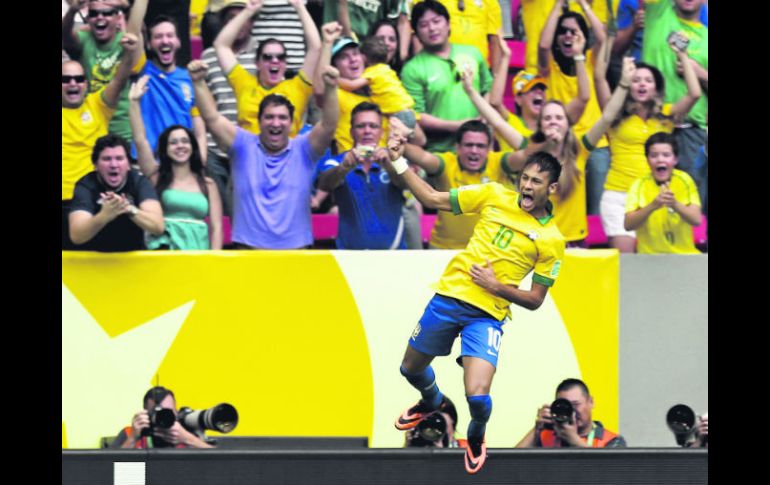 Deportes | Los anfitriones vencen 3-0 a Japón Neymar calla bocas y conduce el triunfo brasileño El ''Scratch'' golea a Japón en el debut de la Copa, con un gol tempranero del nuevo refuerzo del Barcelona Por: EL INFORMADOR 16 de junio de 2013 - 04:05 hs Neymar celebra el primer tanto de Brasil, el cual cayó al minuto tres del partido. EFE / BRASILIA, BRASIL (16/JUN/2013).- No aplastó, pero dejó buen sabor de boca... Brasil, con un gol de su “joya” Neymar, se impuso 3-0 a Japón en el debut de ambas selecciones en el Grupo A de la Copa Confederaciones, en el estadio mundialista de Brasilia. Los anfitriones fueron ampliamente superiores y celebraron el primer triunfo del torneo con goles de Neymar al minuto tres, Paulinho al 48’, y Jo al 93’. Con esa victoria sazonada con generosos pasajes de buen futbol, Brasil se puso al frente del Grupo A, que completan México e Italia, que se enfrentan entre sí este mediodía en el Estadio Maracaná. El duelo entre los dos únicos equipos clasificados hasta este momento a la Copa Mundo 2014 —Brasil como anfitrión y Japón por la eliminatoria asiática— fue favorable de principio a fin a los intereses de los locales. No sólo por el triunfo en el arranque de la competición, sino por el regreso de Neymar al gol, que salió aplaudido al 74’, en lugar de Lucas, tras uno de sus mejores partidos bajo la nueva era del técnico Luiz Felipe Scolari, artífice del pentacampeonato brasileño en 2002. Brasil no dejó ni acomodar a los japoneses cuando ya celebró la primera conquista al minuto tres. En un desborde por izquierda, Marcelo lanzó una pelota al centro del área para que Fred la dejara servida con el pecho para Neymar. El flamente refuerzo del Barcelona de España sacó un potente disparo de derecha que venció al arquero Kawashima. Una vistosa anotación que Neymar celebró a rabiar y con pasitos de danza ante los 67 mil 423 espectadores que llegaron al estadio mundialista “Mané Garrincha”. El delantero de 21 años puso fin así a un ayuno de goles en los últimos nueve partidos que disputó, incluidos dos con el Scratch. El cuadro nipón, fiel a su disciplina, recibió el golpe y fue a buscar el empate. Al minuto ocho, Honda, referente del ataque japonés, avisó con un primer disparo, y 10 minutos después creó la mejor oportunidad con un potente lanzamiento que detuvo en dos tiempos el experimentado portero Julio César. Para el segundo tiempo se repitió la historia. Apenas Japón se asentaba en el terreno, cuando Paulinho dominó dentro del área una pelota servida por Dani Alves para encajar un lindo disparo y hacer el 2-0. Brasil guardó para el final una estocada más para su público. En un fulminante contragolpe, Jo redondeó quizá la mejor exhibición de Brasil desde el regreso de “Felipao”, para sellar el 3-0. LO QUE SIGUE El siguiente cotejo de Brasil es ante el Tricolor de “Chepo” de la Torre, el próximo miércoles, en el Estadio Castelao de la ciudad de Fortaleza. Ese mismo día, Japón se mide al otro rival del grupo, Italia. Temas Futbol Internacional Selección de Brasil Copa Confederaciones Selección de Japón Lee También México vs Argentina: ¿Quién ganará el partido según la IA? "Chucky" Lozano reconoce que jugaría en Chivas o en América Dónde ver EN VIVO el México vs Argentina por el Mundial Sub-20 ¿Dónde ver EN VIVO el partido amistoso México vs Colombia? Recibe las últimas noticias en tu e-mail Todo lo que necesitas saber para comenzar tu día Registrarse implica aceptar los Términos y Condiciones