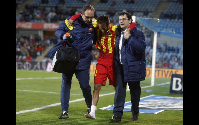 Deportes | Debido a un esguince de tobillo, el futbolista brasileño suspenderá sus actividades Neymar, será baja tres o cuatro semanas Debido a un esguince de tobillo, el futbolista brasileño suspenderá sus actividades 'tres o cuatro semanas' Por: AFP 17 de enero de 2014 - 09:49 hs MADRID, ESPAÑA (17/ENE/2014).- El brasileño Neymar, víctima el jueves de un esguince de tobillo, será baja "tres o cuatro semanas", anunció este viernes el FC Barcelona, lo que deja entrever un regreso a tiempo para los octavos de final de la Liga de Campeones, a mediados de febrero. "Las pruebas realizadas este viernes por la mañana han confirmado que el jugador Neymar Jr. tiene un esguince en los tendones peroneos del tobillo derecho", informó el Barcelona en un comunicado. "El tiempo aproximado de baja es de tres a cuatro semanas", añade el texto. En su primer partido como titular en 2014, Neymar se lesionó el jueves tras 23 minutos de juego contra el Getafe, en la vuelta de octavos de final de la Copa del Rey (0-2), cuando el resultado era de 0-0. Temas Futbol Internacional Barcelona Liga de Campeones de la UEFA Neymar Lee También Chivas Femenil asegura su pase a la Liguilla por doceavo torneo consecutivo Selección Mexicana busca revancha y respuestas ante Ecuador Ivar Sisniega reveló que México tendrá partidos en Centroamérica México busca romper su mala racha ante la Conmebol frente a Ecuador Recibe las últimas noticias en tu e-mail Todo lo que necesitas saber para comenzar tu día Registrarse implica aceptar los Términos y Condiciones
