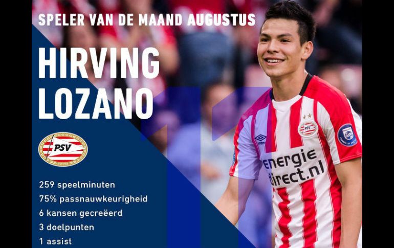 ZEIST, HOLANDA (06/SEP/2017).- El volante mexicano Hirving Lozano ha tenido un inicio de ensueño con el PSV Eindhoven, pues luego de debutar el 12 de agosto pasado en la Eredivisie ahora es reconocido como el Mejor Jugado del Mes del campeonato tulipán.Con tan poco tiempo vistiendo la playera de los Granjeros, el futbolista azteca pudo mostrar sus habilidades en terreno de juego, lo que lo llevó a ser titular indiscutible en las primeras tres fechas de la Eredivisie.La marca goleadora fue clave para ser reconocido con esta distinción, pues lleva tres anotaciones, una en cada partido de los que disputó, así como una asistencia en los 259 minutos disputados durante el mes.El siguiente compromiso de Chucky Lozano se dará cuando el PSV Eindhoven visite al Heerenveen el próximo sábado 10 de septiembre, después de que jugara con la Selección Nacional de México, en la que también se hizo presente en el marcador con un gol en el encuentro ante Panamá.