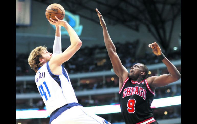 Deportes | Chicago 98-100 Dallas Nowitzki responde a tiempo El alemán anota un triple en los últimos segundos para darle el triunfo a los Mavericks y mantener la ilusión de playoffs Por: EL INFORMADOR 30 de marzo de 2013 - 23:41 hs DALLAS, ESTADOS UNIDOS (31/MAR/2013).- En el momento importante la diferencia la marco Nowitzki. El alero Dirk Nowitzki anotó triple cuando restaban 2.9 segundos para el final del partido y llevó a los Mavericks de Dallas a una victoria por 100-98 sobre los Bulls de Chicago. Con su triunfo, su sexto en los últimos 10 partidos, los Mavericks (36-37) se mantienen décimos en la Conferencia Oeste, a un juego de los Jazz de Utah, que ocupan el octavo lugar de ese grupo, último que otorga boleto para la fase final, cuando restan 18 días de competición de la temporada regular. Los Mavericks perdían por 12 puntos en el cuarto parcial, pero el astro alemán marcó los ocho puntos finales para coronar una arremetida de 15-1 en los últimos tres minutos y medio del partido. Nowitzki terminó con 35 puntos, su mayor cifra en la campaña. Después que Jimmy Butler falló dos tiros libres con 15.9 segundos por jugar, Nowitzki atinó el triple de la victoria ante la defensa de Luol Deng. Nate Robinson falló el último tiro de Chicago. Robinson metió 14 de sus 25 puntos en el cuarto parcial, en el primer partido de Chicago desde que frenó la racha de 27 victorias del Heat de Miami. Carlos Boozer y Deng también aportaron 25 cada uno por los Bulls, que habían ganado sus tres anteriores. Los reservas Brandan Wright y Vince Carter aportaron 17 puntos cada uno para el equipo tejano. Los Bulls (39-32), que perdieron su quinto partido en los últimos 10 disputados, ocupan ahora el sexto lugar de la Conferencia Este, tras el triunfo de Atlanta. El equipo de Chicago, que se encargó de romperle la racha de 27 victorias consecutivas a los Heat de Miami, el miércoles, fue liderado por los aleros Carlos Boozer, Luol Deng y el reserva Nate Robinson, con 25 puntos cada uno. Atlanta pasa a Chicago El reserva Ivan Johnson encestó 21 puntos, su mejor cifra en la temporada y Devin Harris colaboró con 13 de 17 en el último cuarto para darle a los Hawks de Atlanta un triunfo por 97-88 sobre los Magic de Orlando. Los Hawks (41-33) se hicieron con seis triunfos en los últimos 10 partidos y se mantienen en el quinto lugar de la Conferencia Este, con medio juego de ventaja sobre los Bulls de Chicago. Atlanta, que ha derrotado por décima ocasión consecutiva a los Magic, también fue guiado por el alero Josh Smith, con 21 puntos, mientras que Devin Harris aportó 17 unidades. Los Magic (19-55) tuvieron la dirección del base Beno Udrih, con 20 puntos. Por el equipo de Orlando también estuvieron el alero Maurice Harkless y el pívot Nikola Vucevic, cada uno con 17 tantos. Con información de EFE y AP OTROS MARCADORESJornada sabatina > Charlotte 92- 100 Filadelfia > Clippers 81-98 Houston > Memphis 99-86 Minnesota > Oklahoma 109-99 Milwaukee > Brooklyn 107-116 Utah Temas NBA Basquetbol Mavericks de Dallas Toros de Chicago Recibe las últimas noticias en tu e-mail Todo lo que necesitas saber para comenzar tu día Registrarse implica aceptar los Términos y Condiciones