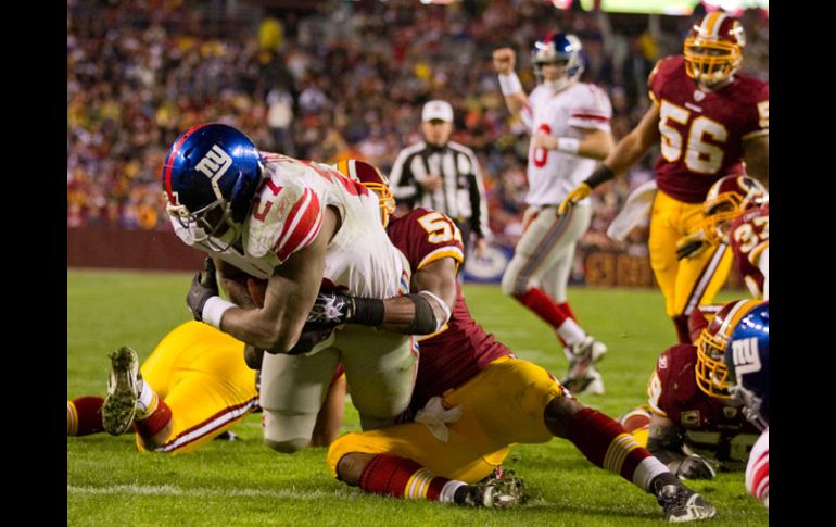 Deportes | Gigantes gana 17-14 a Pieles Rojas, pero es insuficiente Nueva York no clasifica a postemporada Gigantes gana 17-14 a Pieles Rojas, pero es insuficiente Por: AP 2 de enero de 2011 - 19:35 hs Brandon Jacobs, de Gigantes, anota, a pesar del choque con Rocky McIntosh, de Washington. AP / LANDOVER, ESTADOS UNIDOS (02/ENE/2011).- Los Gigantes de Nueva York lograron la victoria que necesitaban el domingo, pero no obtuvieron la ayuda que requerían para avanzar a la postemporada. Osi Umenyiora forzó dos de los cuatro balones perdidos por los Pieles Rojas y los gigantes terminaron la temporada con un triunfo de 17-14 sobre Washington. Pero Green Bay derrotó a Chicago por 10-3 en un encuentro jugado a la misma hora para reclamar el boleto de comodín de la Conferencia Nacional, dejando fuera de la postemporada a Nueva York a pesar de haber conseguido una marca de 10-6. gigantes y Buccaneers se convirtieron en los primeros equipos de la Conferencia Nacional desde 1991 con al menos 10 triunfos que no logran clasificarse a la postemporada. Rex Grossman lanzó para ganancia de 336 yardas para los Pieles Rojas, quienes terminaron con registro de 6-10. Washington tuvo marca de 2-6 en casa, su peor foja desde 1994. Temas NFL Futbol Americano Gigantes de Nueva York Pieles Rojas de Washington Lee También El Oviedo recibe a los Periquitos Futbol hoy 17 de octubre de 2025: ¿Dónde ver los partidos en vivo? ¿Erick Gutiérrez y Roberto Alvarado regresan a la actividad ante Mazatlán? Realizan homenaje al cronista deportivo Roberto Guerrero Ayala Recibe las últimas noticias en tu e-mail Todo lo que necesitas saber para comenzar tu día Registrarse implica aceptar los Términos y Condiciones