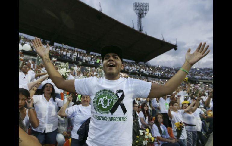 BOGOTÁ, COLOMBIA (30/11/2016).- Con velas blancas y lágrimas, miles de aficionados acudieron este miércoles al estadio de Atlético Nacional para rendir homenaje a quienes serían sus adversarios, el equipo brasileño que prácticamente fue aniquilado el lunes en un accidente de avión cerca de Medellín, donde disputarían la final de la Copa Sudamericana.Poco antes de las siete de la noche, hora a la que iniciaría el partido, empezó un acto de luto para recordar al que llamaron "el hoy eterno Chapé": los jugadores del Atlético Nacional salieron al terreno con flores y caminaron conmocionados a través de una cancha que cambió la rivalidad y el jolgorio por los mensajes solemnes de hermandad con la localidad del sur de Brasil, de donde procedía el humilde equipo, que viajaba ilusionado a jugar el partido más importante de su historia. Algunos de ellos lloraron.Después de escuchar marchas fúnebres, el estadio estalló al grito de "¡Vamos, vamos, vamos Chapé!". Hubo aplausos y saltos. Se levantaron globos, ramos de flores y banderas blancas. En pancartas gigantes se leía "El fútbol no tiene fronteras", "Todos somos Chapecoense" y "Chapecoense inmortal"."Los brasileños no olvidaremos jamás la forma en que los colombianos sintieron como suyo el terrible desastre que interrumpió el sueño de Chapecoense", dijo en español el canciller de Brasil, Jose Serra, interrumpido por sus propias lágrimas y la ovación de los asistentes del Atanasio Girardot, un estadio con capacidad para 40.000 personas. La solidaridad de los colombianos, agregó, ofrece un enorme consuelo, "una luz en la oscuridad cuando todos estamos intentando lo incomprensible"."Quizás no sea una casualidad que los colores de Chapecoense y Atlético Nacional sean verde y blanco, esperanza y paz más allá de la tragedia", afirmó mientras entre un público visiblemente afectado.Desde primera hora de la tarde, cuando los asistentes vestidos de blanco empezaron a llenar el estadio, la afición dedicó cantos al equipo accidentado. La banda de guerra del Ejército puso música al evento, donde sonó el himno de Colombia y el de Brasil, que declaró el martes tres días de luto oficial por el accidente.Desde el momento del siniestro, el club de Medellín pidió a la Confederación Sudamericana de Fútbol que diera el título de campeón al equipo que volaba en un avión británico y se estrelló a cinco minutos de llegar a su destino dejando 71 muertos y seis heridos.