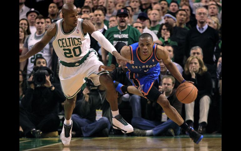 Deportes | Los Celtics de Boston no pueden continuar con la racha ganadora y pierden 89-84 Oklahoma City gana sin Durant Los Celtics de Boston no pueden continuar con la racha ganadora y pierden 89-84 Por: AP 20 de noviembre de 2010 - 02:41 hs Russell Westbrook, quien anotó 31 puntos en este partido, burla a Ray Allen en el partido de ayer. AP / BOSTON, ESTADOS UNIDOS (20/NOV/2010).- Russell Westbrook anotó 31 puntos aunque falló sus siete tiros en el período final y el Thunder de Oklahoma City casi dilapidó una ventaja de 10 puntos, pero se sobrepuso y derrotó el viernes por 89-84 a los Celtics de Boston. Westbrook encestó 11 de 13 tiros libres, y sus únicos dos puntos en el cuarto período fueron un par de tiros libres en los últimos segundos después de que Boston había reducido la desventaja a 85-84. El Thunder no contó con Kevin Durant, líder anotador de la liga, por dolores en el tobillo izquierdo. Kevin Garnett anotó 16 puntos para los Celtics, pero sólo recuperaron un par de rebotes, su cifra más baja de la temporada. Rajon Rondo anotó 14 puntos y tuvo siete asistencias que fueron su menor producción en la campaña. Boston había ganado tres partidos en fila y ocho de sus últimos nueve. Temas NBA Basquetbol Celtics de Boston Recibe las últimas noticias en tu e-mail Todo lo que necesitas saber para comenzar tu día Registrarse implica aceptar los Términos y Condiciones