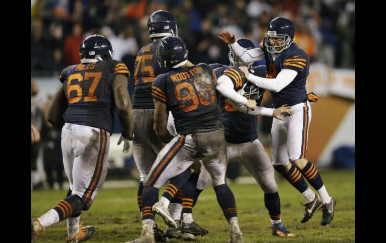 Deportes | El equipo de Chicago logra una victoria de 23-20 contra los de Baltimore Osos derrotan a los Cuervos El equipo de Chicago logra una victoria de 23-20 contra los de Baltimore Por: AP 17 de noviembre de 2013 - 17:17 hs A pesar de que el partido se suspendió alrededor de dos horas, los Osos lograron la victoria. AP / CHICAGO, ILLINOIS (17/NOV/2013).- Robbie Gould convirtió un gol de campo de 38 yardas en la prórroga, para guiar el domingo a los Osos de Chicago hacia una victoria por 23-20 sobre los Cuervos de Baltimore, en un partido que se interrumpió un par de horas por un aguacero torrencial. Justin Tucker empató el encuentro por los Cuervos mediante un gol de campo de 21 yardas, al final del tiempo regular. La interrupción llegó después de que Tucker acertó otro gol de campo, de 52 yardas, cuando restaban 4:51 minutos del primer cuarto. Se ordenó que los espectadores se guarecieran y los jugadores se dirigieron a los vestuarios, en medio de la lluvia y el vendaval que azotaba el Soldier Field. Los jugadores salieron unas dos horas después, cuando el cielo se despejaba y el sol asomaba. Sin embargo, la lluvia y el viento volvieron en el tercer cuarto, y en el graderío abundaron los impermeables. Gould definió el encuentro con la patada en tercera y ocho, cuando restaban 8:41 minutos del tiempo extra. Temas NFL Futbol Americano Cuervos de Baltimore Osos de Chicago Lee También México se impone a Países Bajos y respira en el Mundial Sub-17 Femenil Que siempre no: el Villarreal vs Barcelona no se jugará en EU Chivas viaja a Querétaro sin dos jugadores Chivas busca ante Querétaro dar otro paso rumbo a la Liguilla Recibe las últimas noticias en tu e-mail Todo lo que necesitas saber para comenzar tu día Registrarse implica aceptar los Términos y Condiciones