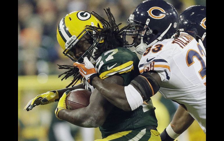 Deportes | Los Osos de Chicago se impusieron 27-20 a Green Bay Osos vencen a Empacadores Los Osos de Chicago se impusieron 27-20 a Green Bay Por: AP 4 de noviembre de 2013 - 23:12 hs Charles Tillman de los osos de Chicago toma la máscara de Eddie Lacy de los Empacadores. AP / GREEN BAY, WISCONSIN, ESTADOS UNIDOS (05/NOV/2013).- Josh McCown ganó la batalla de los quarterbacks suplentes, luego que los Empacadores perdieron a Aaron Rodgers, y los Osos de Chicago se impusieron 27-20 a Green Bay, el lunes por la noche. Brandon Marshall y Matt Forte dieron ayuda suficiente a McCown, para que los Osos cortaran una racha de seis derrotas consecutivas en los duelos contra los Empacadores, sus rivales acérrimos de la División Norte de la Conferencia Nacional. Pero la preocupación principal de los Empacadores es la salud de Rodgers, diestro, que se lastimó el hombro izquierdo al ser capturado por Shea McClellin en la primera serie ofensiva del encuentro. Rodgers hizo algunos pases de calentamiento, pero después de que lo examinó el personal médico, se marchó a los vestuarios. No se le volvió a ver sino a la mitad del tercer cuarto. Los Osos (5-3) se aprovecharon de la ausencia de Rodgers para derrotar a los Empacadores (5-3). Marshall realizó siete atrapadas para 107 yardas y un touchdown, mientras que Forte aportó 125 yardas y otra anotación con sus acarreos. Temas NFL Futbol Americano Osos de Chicago Empacadores de Green Bay Lee También ¿Dónde ver EN VIVO el partido amistoso México vs Colombia? Dónde ver EN VIVO el México vs Argentina por el Mundial Sub-20 La actualidad de Diego Ochoa, formado en Chivas y destacado en el Mundial Sub-20 Ulises Dávila se declara culpable por amaño de partidos Recibe las últimas noticias en tu e-mail Todo lo que necesitas saber para comenzar tu día Registrarse implica aceptar los Términos y Condiciones