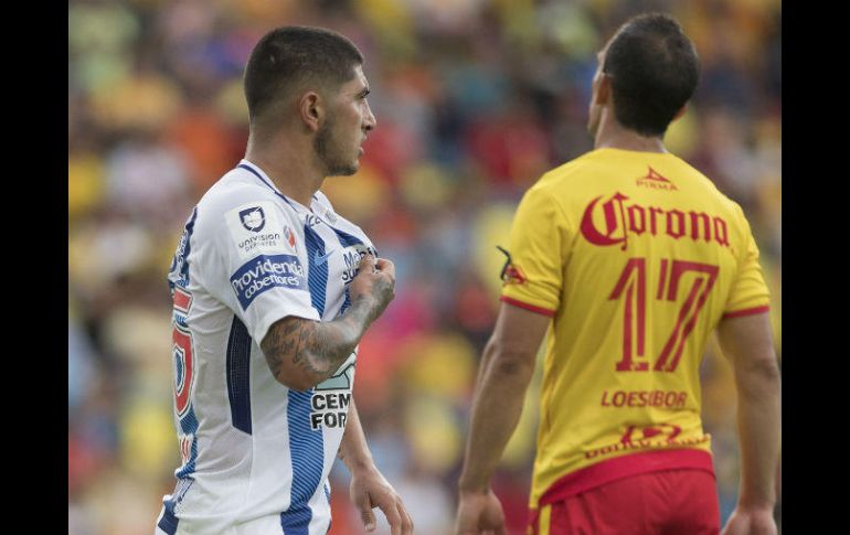 MORELIA, MICHOACÁN (18/AGO/2017).- El equipo de Pachuca sumó su segundo triunfo en fila al dar cuenta como visitante 2-1 a Morelia que sigue sin ganar, en partido que inició la actividad de la fecha cinco del Torneo Apertura 2017 de la Liga MX. Los goles de la diferencia fueron obra de Víctor Guzmán a los minutos 37 y 44; el peruano Raúl Ruidíaz había adelantado a los Monarcas al 33. Con este resultado los hidalguenses llegaron a seis puntos, en tanto que los michoacanos se quedaron con tres. El cuadro de la "Bella Airosa" fue capaz de reflejar en el marcador lo que plasmó en la cancha donde fue muy superior, sobre todo en el primer tiempo en el que se fue abajo en el marcador por la única jugada de peligro que generó el conjunto local. Los pupilos del uruguayo Diego Alonso se apoderaron del esférico desde el inicio y fueron capaces de generar un futbol que les debió dar la ventaja, algo que no lograron y que aprovechó el cuadro michoacano para de manera poco merecida irse al frente en el marcador. Todo se originó en un centro por izquierda a primer poste, donde el peruano Raúl Ruidíaz se anticipó la marca para "cachetear" el esférico al sector contrario y poner el 1-0 al minuto 34. La ventaja fue efímera, ya que sólo tres minutos después lograron el empate en un gran balón filtrado de Erick Aguirre para Víctor Guzmán, quien de media vuelta definió ante la salida del uruguayo Sebastián Sosa. Y antes del descanso nuevamente Guzmán aprovechó la mala marca de la zaga purépecha para conectar un cabezazo a centro del uruguayo Jonathan Urretaviscaya y darle la vuelta a la pizarra, al minuto 44 e irse así al descanso. Además de ajustar en el cuadro bajo con la salida de Enrique Pérez y el ingreso de Carlos Guzmán, el estratega Roberto Hernández ordenó los ingresos de Rodolfo Vilchis y de Jorge Zárate en busca de un mayor peso a la ofensiva. Mientras los Tuzos bajaron ese afán de ir al frente, optaron por espera al rival y manejar la ventaja, algo que no les costó mucho trabajo ya que mantuvieron a raya a su rival, para así sumar su segundo triunfo en fila, mientras que Morelia sigue sin ganar y se complica en el tema del porcentaje. El arbitraje estuvo a cargo de Adonai Escobedo, quien tuvo una buena labor. Amonestó a Raúl López (40), el chileno Ángelo Sagal (42) y a Emanuel García (85) por la visita. El argentino Emmanuel Loeschbor (89) vio cartón preventivo por los de casa.Alineaciones: Morelia.- Sebastián Sosa, Enrique Pérez (Carlos Guzmán, 46), Emanuel Loeschbor, Gabriel Achillier, Carlos Gerardo Rodríguez, Mario Osuna, Diego Valdés, Andy Polo (Jorge Zárate, 70), Ángel Sepúlveda (Rodolfo Vilchis, 56), Gastón Lezcano y Raúl Ruidíaz. Director Técnico: Roberto Hernández. Pachuca.- Alfonso Blanco, Raúl López, Oscar Murillo, Robert Herrera, Emmanuel García, Jorge Hernández, Erick Aguirre, Erick Aguirre, Víctor Guzmán, Jonathan Urretaviscaya (Francisco Figueroa, 81) y Ángelo Sagal (Roberto de la Rosa, 75). Director Técnico: Diego Alonso (URU).