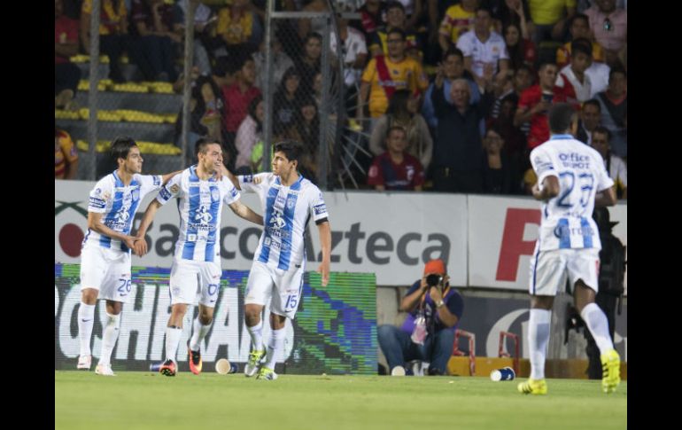 MORELIA, MICHOACÁN (20/SEP/2016).- Tuzos de Pachuca goleó de visitante 5-1 a Monarcas Morelia, en partido de la fecha 10 del Apertura 2016 de la Liga MX de futbol, realizado la noche del martes en el estadio Morelos de esta ciudad. Por Tuzos anotaron el argentino Franco Jara, a los minuto ocho y 54, ambos de tiro penal; Erick Gabriel Gutiérrez (13), Hirving Lozano (77) y el colombiano Wilson Morelo (87, penal). Por Monarcas descontó el argentino Emanuel Loeschbor, al 16.En el inicio del partido, Pachuca se colocó 1-0 al minuto ocho, cuando el argentino Franco Jara convirtió un tiro penal con disparo con la derecha, que venció al portero Carlos Felipe Rodríguez. Los Tuzos aumentaron la ventaja 2-0 al 13 de acción, cuando Erick Aguirre dio pase a Erick Gutiérrez, quien disparó desde fuera del área, colocado, y superó la estirada del "cancerbero" michoacano. Monarcas se acercó 2-1 al 16 por conducto del defensa argentino Emanuel Loeschbor, con certero remate con la cabeza dentro del área a un servicio de Diego Valdés y así terminó el primer tiempo. Para la parte complementaria, Pachuca aumentó el marcador 3-1 al 54, en otro penalti que cobró de nueva cuenta Franco Jara. Los michoacanos adelantaron líneas en busca de goles, pero se encontraron con la ordenada zaga hidalguense, equipo que conformó la goleada 4-1 al 77 de tiempo corrido, por conducto de Hirving Lozano, quien disparó para dejar sin opción a Rodríguez. Tuzos logró el 5-1 final al minuto 86, por tiro penal que cobró el delantero colombiano Wilson Morelo. El arbitraje correspondió a César Arturo Ramos. Amonestó por "Tuzos" a Emmanuel García, al minuto 14, John Stefan Medina (57), Franco Jara (60) y por los locales a Carlos Adrián Morales (4), Jefferson Cuero (5), Facundo Erpen (53). Alineaciones: Morelia.- Carlos Felipe Rodríguez, Enrique Pérez, Facundo Erpen, Emanuel Loeschbor, Carlos Adrián Morales, David Cabrera, Juan Pablo Rodríguez, Cristian Penilla (Jorge Zárate, 69), Diego Valdés (Miguel Sansores, 75), Jefferson Cuero y Raúl Ruidíaz (Luis Gabriel Rey, 59). DT Enrique Meza. Pachuca.- Óscar Pérez, Omar González (Raúl López, 80), Emmanuel García (Rubén Botta, 59), Óscar Murillo, Stefan Medina, Víctor Guzmán, Erick Gabriel Gutiérrez, Erick Germain Aguirre, Hirving Lozano, Jonathan Urretaviscaya y Franco Jara (Wilson Morelo, 81). DT Diego Martín Alonso (URU).