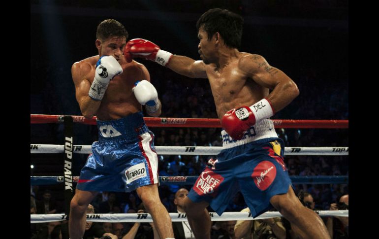 Deportes | El 'Pac-man' se lleva la pelea por decisión unánime Pacquiao gana a Algieri tras derribarlo seis veces El 'Pac-man' se lleva la pelea por decisión unánime, conserva su cinturón Welter de la OMB Por: AP 23 de noviembre de 2014 - 00:03 hs La movilidad del estadounidense sobre el cuadrilátero complicó la pelea a Pacquiao, quien no pudo dar un golpe de nocaut. AFP / X. Olleros MACAO, CHINA (23/NOV/2014).- Manny Pacquiao logró los grandes golpes que ansiaba con desesperación, derrotando a Chris Algieri el domingo sobre el cuadrilátero en su camino para alzarse con la victoria en una desigual pelea el título de campeón del peso welter. Pacquiao persiguió a Algieri desde la campana de apertura, derribándolo en varias ocasiones y dominando el combate desde el inicio. Casi lo único que no logró el boxeador filipino fue su primera victoria por nocaut en cinco años, y en su lugar tuvo que conformarse con una decisión favorable de los jueces tras 12 asaltos contra un rival que parecía no querer participar. Al final del combate, Algieri había caído a la lona en seis ocasiones. Y Pacquiao logró una importante victoria que debería hacer olvidar la idea de que su carrera está en declive e incluso fijar una pelea con Floyd Mayweather Jr. para el año que viene. Temas Box Boxeo Manny Pacquiao Peleas de campeonato mundial OMB Recibe las últimas noticias en tu e-mail Todo lo que necesitas saber para comenzar tu día Registrarse implica aceptar los Términos y Condiciones