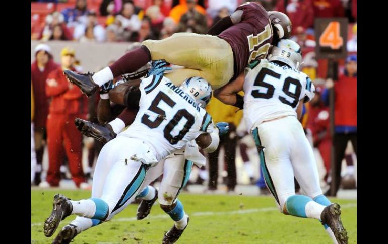 Deportes | Carolina gana 21-13 a Washington luego de cinco derrotas en fila Panteras rompe la mala racha Carolina gana 21-13 a Washington luego de cinco derrotas en fila Por: AP 4 de noviembre de 2012 - 18:10 hs La defensiva de Carolina maltrató a Griffin durante el partido. AP / LANDOVER, MARYLAND (04/NOV/2012).- Cam Newton completó 13 pases de 23 intentos para 201 yardas con un touchdown y corrió en ocho ocasiones para 37 yardas y una anotación, con lo que las Panteras de Carolina terminaron con una racha de cinco derrotas al vencer el domingo 21-13 a los Pieles Rojas de Washington. Las Panteras (2-6) necesitaban imperiosamente de una victoria luego de una serie de derrotas cerradas que tenían a los jugadores dudando de la capacidad del equipo. Newton respondió con uno de sus mejores partidos de la temporada, incluyendo un pase de 19 yardas para touchdown a Steve Smith y otro pase de 82 yardas que dejó la mesa servida para anotar. Robert Griffin III terminó con 23 completos de 39 para 215 yardas, corrió 11 veces para 53 yardas y fue atrapado atrás cuatro veces mientras los Pieles Rojas (3-6) perdían su tercer partido al hilo. Temas NFL Futbol Americano Pieles Rojas de Washington Panteras de Carolina Lee También México listo para un nuevo desafío en el Mundial Sub-17 Femenil Todas las selecciones que han calificado al Mundial 2026 hasta hoy Chivas y América calientan en redes el Clásico Nacional de la Fecha FIFA Barcelona interesado en Gilberto Mora, esto es lo que se sabe Recibe las últimas noticias en tu e-mail Todo lo que necesitas saber para comenzar tu día Registrarse implica aceptar los Términos y Condiciones