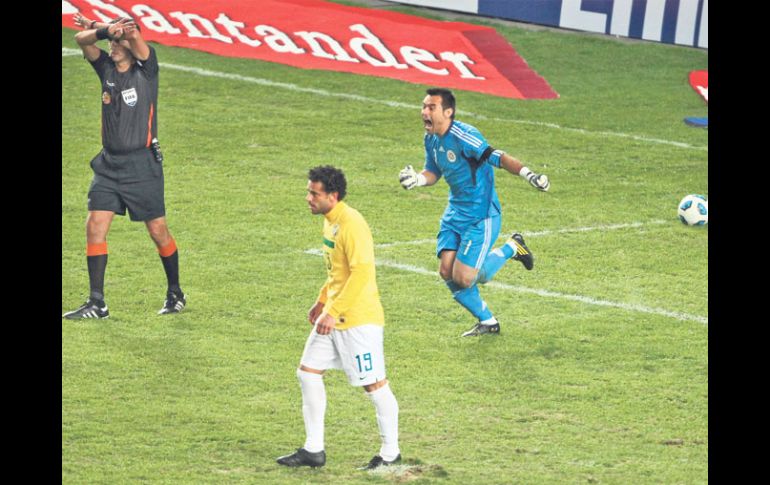 Deportes | La canarinha falla todos sus disparos Paraguay tumba al campeón El cuadro guaraní aguante el empuje de Brasil y manda el partido a penales donde Justo Villar se convierte en figura Por: NTX 18 de julio de 2011 - 01:34 hs El guardameta de Paraguay Justo Villar (izq.) festeja luego que Fred, de Brasil, fallara el penal decisivo. EFE / LA PLATA, ARGENTINA (18/JUL/2011).- Con el portero Justo Villar como su gran figura, Paraguay logró su pase a semifinales de la Copa América Argentina 2011, al vencer en penales 2-0 a Brasil, partido que terminó empatado 0-0 en el tiempo reglamentario, disputado en el Estadio de la Ciudad de La Plata. Pese a haber sido infinitamente superior en el trámite normal, la canarinha falló sus cuatro oportunidades en el manchón penal, lo que aprovechó el cuadro guaraní para anotar dos de sus tres disparos. Elano, Thiago Silva, André Santos y Fred no pudieron batir a Villar, mientras que Marcelo Estigarribia y Cristian Riveros acertaron para darle el triunfo a su equipo. En el tiempo regular, con su mejor futbol, técnica y desempeño la verdeamarela se apoderó de las acciones desde que el balón comenzó a rodar y generó las ocasiones de gol necesarias para terminar con el cero antes del descanso, sin embargo, su falta de definición y excelentes atajadas de Justo Villar le impidieron conseguir la ventaja. Neymar enseñó que todavía no es ese jugador determinante que puede equilibrar la balanza a favor de su equipo al dejar escapar la más clara de la primera parte, en un error de Paulo da Silva en la salida al regalar el esférico que Robinho le puso a la joven promesa, quien de frente mandó su remate a un costado del poste derecho, al minuto 27. Cinco minutos después, Villar comenzó a ser factor al salvar su meta del primer gol en un remate a “boca de jarro” por parte de Lucio, que tapó con el cuerpo cuando ya se cantaba el gol. Y en la recta final, generaron cuatro acciones claras que no terminaron en el fondo de las redes gracias a las intervenciones de Villar, que fue la gran figura de su equipo y del partido. A siete minutos del final, Édgar Barreto salvó a su equipo de la derrota al despejar en la línea, y un poco más atrás de la misma, un cabezazo de Fred cuando Villar ya estaba vencido, para así enviar el partido al alargue. En el mismo, ambos equipos se quedaron con 10 hombres por las expulsiones de Antolín Alcaraz y Lucas Leiva, bajas que no cambiaron en nada la tendencia de los 30 minutos extras. Brasil siguió sin poder romper con el cero y se tuvo que ir a los penales, en los que de manera increíble falló sus cuatro chances para abdicar la corona y darle el pase a un cuadro paraguayo que apostó por un futbol poco atractivo, pero que al final tuvo su recompensa. Alineaciones: Brasil.- Julio César, Maicon, Lucio, Thiago Silva, André Santos, Lucas Leiva, Ramires, Paulo Ganso (Lucas, 100’), Robinho, Neymar (Fred, 80’) y Alexandre Pato (Elano, 110’). D.T. Mano Menesez. Paraguay.- Justo Villar, Antolín Alcaraz, Paulo da Silva, Darío Verón, Aureliano Torres (Elvis Marecos, 70’), Enrique Vera (Édgar Barreto, 63’), Cristian Riveros, Víctor Cáceres, Marcelo Estigarribia, Nelson Haedo Valdez y Lucas Barrios (Hernán Pérez, 83’). D.T. Gerardo Martino. Temas Selección de Brasil Copa América 2011 Selección de Paraguay Lee También Novak Djokovic avanza a semifinales del Masters de Shanghái Mundial Sub-20: EU golea a Italia y enfrentará a Marruecos Mundial Sub-20: Chivas y Juárez se disputan el futuro del juvenil Diego Ochoa Aficionado le pide a Javier Aguirre que Gilberto Mora no pruebe el alcohol | VIDEO Recibe las últimas noticias en tu e-mail Todo lo que necesitas saber para comenzar tu día Registrarse implica aceptar los Términos y Condiciones
