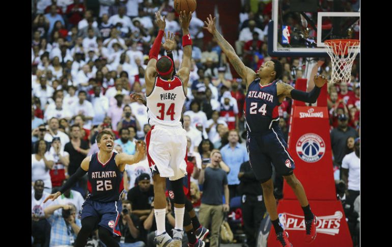 Deportes | Washington derrota 103-101 a Atlanta en el tercer juego de la serie Paul Pierce fulmina a los Hawks Con anotación del alero en el último segundo del juego, los Wizards se llevaron la victoria 103-101 sobre Atlanta Por: EL INFORMADOR 9 de mayo de 2015 - 22:58 hs WASHINGTON, ESTADOS UNIDOS (09/MAY/2015).- Un enceste de Paul Pierce en el último aliento del partido le dio ayer a los Wizards de Washington la victoria 103-101 sobre los Hawks de Atlanta, pese a la ausencia del lesionado John Wall y haber dilapidado una ventaja de 21 puntos en el último cuarto. Los Wizards lideran 2-1 la Semifinal de la Conferencia del Este. Washington no pudo contar con Wall, su estelar armador, por segundo partido seguido debido tras fracturarse la mano izquierdo. Pero los Hawks la pasaron mal durante la mayor parte del duelo. Los locales Wizards ganaban por 21 puntos con menos 10 minutos por jugar. La ventaja se evaporó cuando una ofensiva 17-0 de Atlanta les dejó a solo tres puntos con algo más de tres minutos para el final. Un triple de Mike Muscala con 14,1 segundos restantes empató el partido. El cuarto partido de la serie será mañana en Washington. Fue el segundo día seguido que un tiro que dio contra el tablero sentenció un partido de los playoffs de la NBA. Derrick Rose embocó un triple el viernes para darle a Chicago la victoria 99-96 sobre Cleveland. SABER MÁSGasol, en duda El español Pau Gasol será esperado por los Bulls de Chicago hasta poco antes de comenzar el cuarto partido de la serie contra los Cavaliers de Cleveland para determinar si está recuperado de un tirón muscular en la pierna izquierda. Temas NBA Basquetbol Washington Wizards Hawks de Atlanta Lee También NFL: Resultados del Monday Night Football Astros se instalan en la final de zona de la LNBP Astros de Jalisco doblega a Xalapa y se pone a un juego de la Final de Zona Astros de Jalisco toma ventaja sobre Xalapa en la semifinal de zona Recibe las últimas noticias en tu e-mail Todo lo que necesitas saber para comenzar tu día Registrarse implica aceptar los Términos y Condiciones