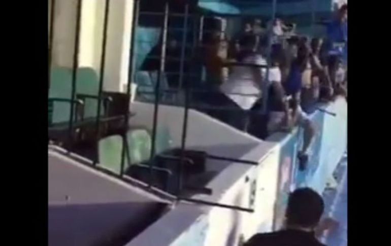 Deportes | Más de 20 lesionados, una aficionada hospitalizada y una ambulancia dañada es el saldo Pelea en final de Segunda División deja heridos y destrozos Más de 20 lesionados, una aficionada hospitalizada y una ambulancia dañada es el saldo Por: SUN 16 de mayo de 2016 - 15:01 hs CIUDAD VICTORIA, TAMAULIPAS (16/MAY/2016).- Más de 20 personas lesionadas, varios detenidos, al menos una aficionada hospitalizada y una ambulancia dañada, es el saldo preliminar de la bronca que se originó en las gradas del estadio Tamaulipas, luego de que el equipo Potros de la Universidad Autónoma del Estado de México ganó la final de ascenso de la Segunda División Premier, sobre el equipo local, Jaiba Brava del Tampico Madero. El partido por la final de ascenso terminó con empate a cero goles, pero Potros logró su pase a la Liga de Ascenso, por marcador global de un gol a cero. Justo al finalizar el juego comenzaron los problemas en la zona de la herradura Norte, donde se ubica la porra "Terrorizer". Después los golpes se extendieron a otras zonas de las gradas; principalmente eran aficionados quienes retaban a los policías. La Cruz Roja reportó que una mujer fue trasladada al área de urgencias del Hospital Regional de Pemex, pero se desconocía su estado de salud. Una ambulancia -se desconoce de cual corporación de emergencias- resultó con el parabrisas estrellado, producto de las agresiones de algunos aficionados. Los reporteros que cubrían el partido, así como jugadores y familiares del equipo Potros tardaron más de una hora en poder salir del estadio Tamaulipas. Ante el caos y los golpes en las gradas muchos aficionados tuvieron que ingresar al terreno de juego, unos diez fueron atendidos por paramédicos ahí mismo en el césped del estadio. Aproximadamente a las 21:30 horas el Club Potros UAEM FC publicó en su cuenta de Twitter: "AVISO A TODA LA AFICIÓN: Jugadores, Cuerpo Técnico, familia y afición que se encontraban en el estadio Tamaulipas, se encuentran bien y seguros.·SOMOSDEASCENSO". Temas Futbol Mexicano Segunda División Lee También ¿Dónde ver Argentina vs Colombia: semifinal del Mundial Sub-20? "Soy Frankelda", la primera película stop motion de México Peso mexicano TRIUNFA ante el dólar al inicio de la jornada Calendario de partidos de la J13 del Apertura 2025 Recibe las últimas noticias en tu e-mail Todo lo que necesitas saber para comenzar tu día Registrarse implica aceptar los Términos y Condiciones