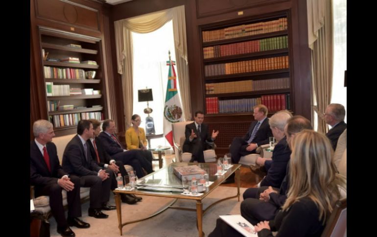 CIUDAD DE MÉXICO (21/NOV/2016).- El Presidente Enrique Peña Nieto recibió esta tarde de lunes, en la residencia oficial de Los Pinos, al Comisionado en Jefe de la NFL, Roger S. Goodell, con motivo del encuentro que sostendrán en el estadio Azteca los Raiders de Oakland y los Texanos de Houston, informó la Presidencia de la República.De acuerdo con información de la casa presidencial, el Presidente Peña Nieto y el Comisionado de la NFL, estuvieron acompañador por los secretarios de Hacienda y Crédito Público, José Antonio Meade Kuribreña, y de Turismo, Enrique de la Madrid Cordero, así como el titular de la Comisión Nacional de Cultura Física y Deporte, Alfredo Castillo Cervantes.