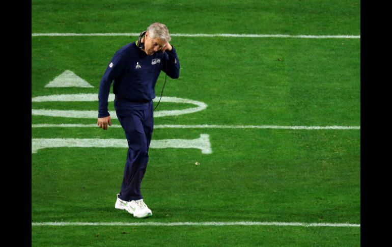 Tan cerca de otra celebración. Tan cerca de convertirse en la próxima dinastía de la NFL."El impacto de la decepción de este partido, que se nos escapa y se lo lleva el otro en el recta final", dijo un sombrío Carroll el lunes, poco antes que su equipo embarcara rumbo a Seattle tras la derrota 28-24 ante Nueva Inglaterra. "Será algo con lo que tendremos que lidiar por largo tiempo y que nos hará más fuertes, que sabremos poner en perspectiva. Ahora mismo duele bastante".Carroll mantuvo firme su respaldo a la decisión de permitir al quarterback Russell Wilson soltara el pase desde la 1 de Nueva Inglaterra con 26 segundos por jugar, un envío que tenía a Ricardo Lockette como blanco y acabó siendo interceptado por Malcolm Butler.También defendió al coordinador ofensivo Darrell Bevell, duramente criticado por preferir una jugada de pase teniendo al estelar running back Marshawn Lynch."Tenemos la gran suerte de contar con él. Ha sido totalmente clave en todo lo que hemos logrado", afirmó Carroll sobre Bevell. "No tengo ningún tipo de reserva en señalar eso. Y no lo digo nada más por decirlo, por ser alguien magnífico dentro de nuestro grupo técnico y que también es crucial para nuestro futuro".Carroll indicó que el reloj y los tiempos que aún le quedaban por pedir a Halcones Marinos dictaban que debían lanzar el balón una vez y quizás dos veces desde la 1. Adjudicó crédito tanto a Butler por el pase interceptado como al otro cornerback Brandon Browner por cortarle el paso al receptor Jermaine Kearse en la jugada, abriendo el espacio para que Butler se quedara con el ovoide.Seattle decidió pasar el balón al percatarse que Nueva Inglaterra adelantaba a sus defensas en la raya de gol, explicó Carroll. Los Halcones Marinos también querían exprimir todo el tiempo posible para evitar que Tom Brady tuviera otra oportunidad de liderar un ataque de los Patriotas."Fácilmente hubiéramos hecho otra cosa, pero cuando adelantaron a sus defensores en la línea de gol, sabía que debíamos aprovechar la ventaja que teníamos en el juego aéreo, así que decimos lanzar un pase. Está bien", acotó.
