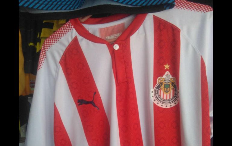 GUADALAJARA, JALISCO (14/JUL/2017).- Los productores de mercancía deportiva pirata no perdieron tiempo y ya tienen disponible la nueva camiseta de Chivas en el mercado de San Juan de Dios, de Guadalajara.La versión pirata de la casaca rojiblanca se vende por 280 pesos en locales de la calle Alfareros e incluye ya la decimosegunda estrella, que los compradores de la versión oficial deben poner por sí mismos.La camiseta oficial del Rebaño, que fue presentada ayer, se vende por mil 300 pesos, por la versión de aficionado, y dos mil 200 pesos por la versión de jugador.En el mismo local se encontraba disponible la camiseta del nuevo uniforme del América, que también fue presentado ayer, así como versiones conmemorativas de otros uniformes del Rebaño, aunque la nueva casaca de visita, de color azul oscuro, todavía no está disponible.