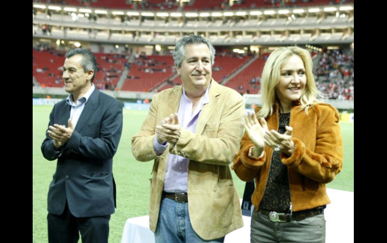 Rafael Ortega, Jorge Vergara y Angélica Fuentes dan la bienvenida a la afición. E. PACHECO /