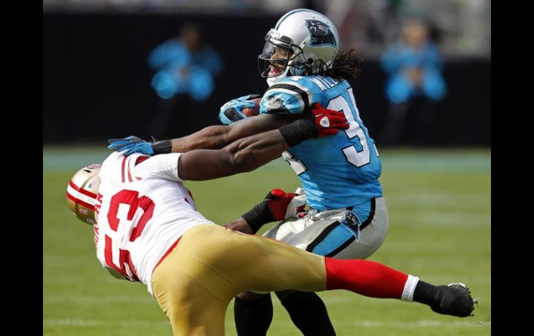 Deportes | Los felinos vencen a los 49ers de San Francisco por marcador de 23-20 Por fin ganan las Panteras de Carolina Los felinos vencen a los 49ers de San Francisco por marcador de 23-20 Por: AP 24 de octubre de 2010 - 16:29 hs San Francisco no pudo detener a la ofensiva de las Panteras. AP / CHARLOTTE, CAROLINA DEL NORTE (24/OCT/2010).- Richard Marshall interceptó el domingo un pase del mariscal de campo sustituto de los 49ers David Carr, a sólo un minuto del final, y después John Kasay pateó un gol de campo de 37 yardas con 39 segundos en el reloj para darle a las Panteras de Carolina su primera victoria de la temporada, por marcador de 23-20 sobre los 49ers de San Francisco. Las Panteras (1-5) habían empatado el encuentro cuando el novato David Gettis, quien dejó caer un pase para touchdown al comienzo del cuarto periodo en cuarta oportunidad, se redimió al atrapar uno de 23 yardas para anotación con 1:53 minutos de juego restantes. Con Alex Smith fuera del terreno de juego por un esguince en el hombro izquierdo, Carr lanzó hacia un receptor con doble cobertura y Marshall tomó el balón en la yarda 43 de Carolina. Después Matt Moore encontró a Brandon LaFell con un pase de 35 yardas y así preparó el gol ganador de Kasay. San Francisco (1-6) había tomado la delantera por 20-13 cuando Ray McDonald realizó un regresó de 31 yardas para touchdown luego de interceptar un pase de Moore al inicio del último cuarto. Temas NFL Futbol Americano Panteras de Carolina 49ers de San Francisco Lee También ¿Sabrá el gobernador? Futbol hoy 13 de octubre de 2025: ¿Dónde ver los partidos en vivo? Así se jugarán las Semifinales del Mundial Sub-20 El Tricolor entrenó en Guadalajara tras la humillación ante Colombia Recibe las últimas noticias en tu e-mail Todo lo que necesitas saber para comenzar tu día Registrarse implica aceptar los Términos y Condiciones