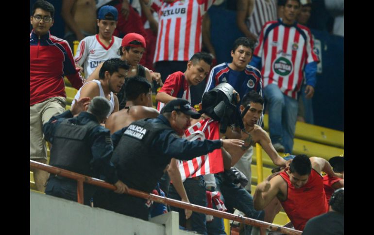Deportes | Aficionados dicen que cuando encendieron bengalas los uniformados los atacaron Porras acusan a policías por gresca en Clásico Tapatio Señalan aficionados que cuando encendieron bengalas los uniformados se fueron contra ellos Por: EL INFORMADOR 23 de marzo de 2014 - 18:28 hs Señalan que policías arremetieron contra hombres y mujeres que no tenían nada que ver con la violencia generada. MEXSPORT / GUADALAJARA, JALISCO (23/MAR/2014).- Las Chivas del Guadalajara tienen varias barras en la ciudad y en otros puntos del país. Grupos de animación conocidos como La Irreverente, La Reja, Legión 1908 y La Insurgencia, entre otras. De acuerdo al testimonio de dos de cuatro barristas consultados, ayer se iniciaron todos los actos violentos con un portazo. Al minuto 80 del partido se dieron los hechos lamentables en la tribuna del Jalisco, y los barristas indicaron que la gresca inició cuando los elementos se fueron de forma violenta contra los aficionados, luego de que éstos encendieran unas bengalas. Según los testimonios recogidos por este medio que pidieron anonimato pero que están bien identificados, los policías de Guadalajara entraron sin mediar palabra a todos los varones (y algunas mujeres), aunque no estuvieran involucrados en el desmán. Unos minutos antes de iniciar el partido, reportaron los barristas, en la zona C (en la portería Sur) la barra La Irreverente y La Insurgencia (que viene del Distrito Federal) entraron por la fuerza y sin ninguna revisión previa por parte de las autoridades presentes en el coloso de la Colonia Independencia, esto denominado como un portazo, la primera manifestación de hechos violentos durante el partido. En versión de los consultados, eran dos mil las personas de La Insurgencia y La Irreverente en la Zona C o Alta Sur como también se le conoce; en sus comentarios, consignan que estarían otras mil personas que coreaban las canciones pero que no eran barristas. La forma en la que los elementos llegaron provocó la ira de ambas porras y la respuesta violenta en contra de la autoridad, desatando los hechos ya conocidos. Los cuatro entrevistados afirman y coinciden en que la directiva rojinegra cometió un error estratégico: al no venderles boletos a los diferentes grupos de las Chivas, no pudieron juntarlos a todos en la zona inferior de la portería Sur del Estadio Jalisco, donde estarían mejor controlados, aún y cuando hicieron esta petición de boletos con dos semanas de anticipación a la fecha del partido; por ello, se vieron forzados a comprar boletos económicos, siendo los de esta zona a los que tuvieron acceso. Los barristas condenaron los hechos ocurridos en la tribuna del Estadio Jalisco. No justifican las acciones que se emprendieron contra los policías, pero subrayaron que fueron los elementos de seguridad los que iniciaron provocando a los aficionados El uso de las bengalas Aunque en esta ocasión los artefactos luminosos fueron metidos sin mediar revisión por el portazo, de acuerdo a los barristas, éstos suelen meter las bengalas al Estadio Jalisco mediante tres métodos: 1) Entre la ropa interior de los aficionados 2) Con una cuerda suben una mochila hasta la zona tribuna alta del Estadio Jalisco 3) Sobornos a personal de mantenimiento del estadio para que escondan una mochila después de la revisión de rutina que hace Protección Civil Jalisco. De acuerdo a versiones de uno de los barristas consultados, las bengalas fueron ingresadas al Jalisco como medida de represalia contra el Atlas por no proporcionarles los boletos que solicitaron, con el objetivo de que el club rojinegro se hiciera acreedor a una multa. Las barras de las Chivas Los testimonios identifican que La Irreverente tiene dos grupos radicales un grupo que vecino del Auditorio Benito Juárez y al otro se le ubica en la zona de San Pedrito. Aunque también hay decenas de personas moderadas. A La Irreverente se le puede identificar como las personas que se juntan en la parte alta del Omnilife y nunca se sientan. La barra de La Reja son los más radicales y ya no entran al Estadio Omnilife. No se registró su presencia en los desmanes del sábado. La Legión 1908 es el grupo más tranquilo y tiene presencia en Guadalajara y en la Ciudad de México. La Insurgencia del Distrito Federal, considerado como uno de los grupos más agresivos, cuenta con la mayor cantidad de detenidos por los hechos del sábado. Este grupo sólo reserva su presencia en la ciudad en dos ocasiones: en los Atlas vs Chivas y en los Chivas vs América. Chivas inició un programa para dar una credencial a cada individuo que pertenece a sus grupos de animación y con ella venderles boletos pero, según las declaraciones de dos de los barristas consultados, el club ya volvió a vender de manera generalizada los boletos sin pedir la credencial. Reciprocidad entre directivas por boletos está cancelada La Liga MX, como parte de sus políticas de control de las barras o grupos de animación en los estadios del futbol mexicano, canceló desde hace aproximadamente dos años la reciprocidad de boletos de cortesía entre las directivas de los equipos, es decir, que entre dirigencias de los equipos de primera división no se pueden intercambiar boletos para que sus respectivos grupos de animación acudan a los estadios rivales. Ahora, las barras de cada equipo que sea visitante tienen que dirigirse directamente a las directivas de un club local para solicitar boletos, sin intermediación de su directiva. El club local, de acuerdo a sus criterios, ya sea de seguridad o de capacidad en sus estadios, puede decidir qué cantidad de boletos son los que les venderá a las barras visitantes. En el caso de lo ocurrido en el Clásico Tapatío, las barras de Chivas tuvieron que solicitarle boletos directamente a la directiva del Atlas, sin intermediación de la dirigencia rojiblanca EL INFORMADOR / ALAN RODRÍGUEZ Temas Chivas Atlas Clásico Tapatío Policía de Guadalajara Clausura 2014 Lee Tambi