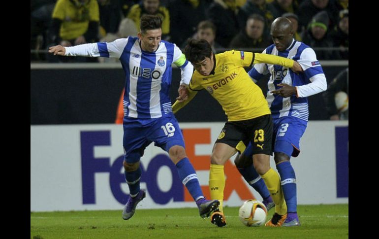 Deportes | Pierden por 2-0 con Miguel Layún y Héctor Herrera como titulares Porto cae ante el Dortmund en Europa League Pierden por 2-0 con Miguel Layún y Héctor Herrera como titulares Por: NTX 18 de febrero de 2016 - 13:39 hs Herrera disputó los 90 minutos de este encuentro. EFE / M. Skolimowska DORTMUND, ALEMANIA (18/FEB/2016).- El Porto, equipo en donde militan los mexicanos Héctor Herrera, Jesús Corona y Miguel Layún, cayó como visitante 2-0 ante el alemán Borussia Dortmund, en el partido de ida de los dieciseisavos de final de la UEFA Europa League. En dicho compromiso, celebrado en el estadio Signal Iduna Park, el veracruzano Layún y el nacido en Tijuana arrancaron como titulares, mientras que el "Tecatito" Corona vio el arranque del compromiso desde la banca. Los "revolucionarios" se fueron adelante en el marcador apenas seis minutos después del silbatazo inicial, cuando el polaco Lukasz Piszczek venció al portero español Iker Casillas para poner el 1-0 en favor de los suyos. Pese a una mayor posesión del esférico en la primera mitad por parte de los "dragones", el conjunto de los mexicanos no puedo concretar oportunidades claras en el marco del Dortmund, quien se fue con la ventaja 1-0 al descanso. Para la segunda parte el delantero Marco Reus se hizo presente en la pizarra, luego de disparar de pierna derecha para poner el 2-0 definitivo al minuto 71. En este cotejo, tanto Miguel Layún como Héctor Herrera disputaron los 90 minutos del encuentro de ida, mientras que Jesús Corona se quedó en la banca del conjunto portugués. El partido de vuelta se disputará el jueves 25 de febrero en el estadio del Dragón, en donde los aztecas recibirán al Borussia Dortmund por el pase a los octavos de final de la UEFA Europa League. Temas Mexicanos en Europa Futbol Internacional Europa League Miguel Layún Borussia Dortmund Porto FC Recibe las últimas noticias en tu e-mail Todo lo que necesitas saber para comenzar tu día Registrarse implica aceptar los Términos y Condiciones