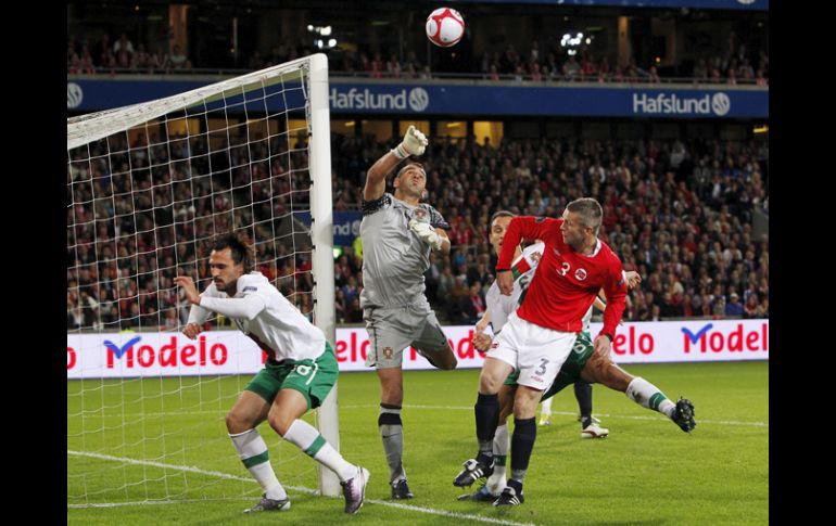 Deportes | Los portugueses no pudieron superar 1-0 ante Noruega Portugal cae por la mínima ante Noruega La selección de Portugal no levanta cabeza y se complica su pase al Euro 2012 Por: EFE 7 de septiembre de 2010 - 15:00 hs El noruego Kjetil Dos Santos (iz) pelea por el control del balón con el portero portugués Eduardo (c) el partido clasificatorio .EFE / LISBOA, PORTUGAL (07/SEP/2010).- La selección de Portugal, que no levanta cabeza desde su empate ante Chipre el viernes, cayó hoy ante una consistente Noruega en Oslo (1-0) y complica seriamente sus aspiraciones para estar en el campeonato Europeo de 2012. Sin el lesionado Cristiano Ronaldo, la selección de "las quinas" dejó alarmantes muestras de impotencia ante un rival muy disciplinado que contra golpeó peligrosamente. Los portugueses empezaron a mascar la tragedia ya en la primera parte. A pesar de las caras nuevas en el once titular, su rumbo se veía abocado al fracaso, sobre todo, después del grave error de Eduardo en el minuto 21. Presionado por Carew, el guardameta falló en el despeje y dejó en bandeja el gol para el delantero Huseklepp, que hizo sangre en la ya dañada autoestima de la selección lusa. El tanto nórdico echaba a perder los aceptables primeros quince minutos de los portugueses, que habían ganado consistencia con la entrada del medio Tiago (Atlético de Madrid) en el once titular. El centrocampista colchonero intervino en la ocasión más clara durante la primera parte al asistir a Raúl Meireles (Liverpool), cuyo remate pasó por encima de la portería de Knudsen. Portugal mantenía la posesión del balón, pero no lograba agrietar el entramado defensivo noruego, muy bien blindado por sus poderosos centrales. Tan sólo un inconformista Nani (Mancester United) ponía en aprietos a los gigantes noruegos, aunque sus asistencias no llegaron a encontrar el destinatario adecuado. En la segunda mitad, el técnico Agostinho Oliveira, que sustituye al sancionado Carlos Queiroz, ordenó a sus pupilos que atacasen con más intensidad. Sin embargo, el combinado portugués abordaba las acciones ofensivas de forma atropellada y facilitaba la tarea defensiva de los nórdicos, que se limitaban a despejar sin dificultad balones aéreos. Los noruegos, conscientes de sus capacidades, malograron dos grandes ocasiones que podían haber sentenciado el choque con antelación. Un gol bien anulado a Hugo Almeida por fuera de juego antecedió a al primer cambio en Portugal: Tiago se retiró por el luso-venezolano Danny. El habilidoso media punta del Zenit avivó la dinámica ofensiva del equipo, pero no lo suficiente y en los minutos finales Oliveira recurrió al luso-brasileño Liedson da Silva en busca del milagro. El empate, que rozó Hugo Almeida en el descuento, no llegó y los noruegos festejaron su primera victoria oficial ante Portugal con el liderato del grupo H. - Ficha técnica: 1.- Noruega: Knudsen; Hogli, Hangeland, Waehler (Vadim Demidov, min.29) y Ruud; B.H. Riise, Hauger y Grindheim (Ruben Jenssen, m.86); Huseklepp, Carew (Mohammed Abdellaoue, m.38) y Pedersen. 0.- Portugal: Eduardo; Sílvio, Ricardo Carvalho, Bruno Alves y Veloso; Raúl Meireles y Manuel Fernandes; Ricardo Quaresma (Liedson, m.84), Tiago (Danny, m.72) y Nani; Hugo Almeida. Goles: 1-0, min. 21, Huseklepp. Arbitro: Laurent Duhamel (FRA) amonestó a Raúl Meireles, Bjorn Riise y Hugo Almeida. Incidencias: Segundo partido del Grupo H valedero para la Eurocopa de 2012 disputado en el estadio Ullevaalen de Oslo ante unos 25.000 espectadores (lleno). Temas Futbol Internacional Selección de Portugal Eurocopa 2012 Recibe las últimas noticias en tu e-mail Todo lo que necesitas saber para comenzar tu día Registrarse implica aceptar los Términos y Condiciones