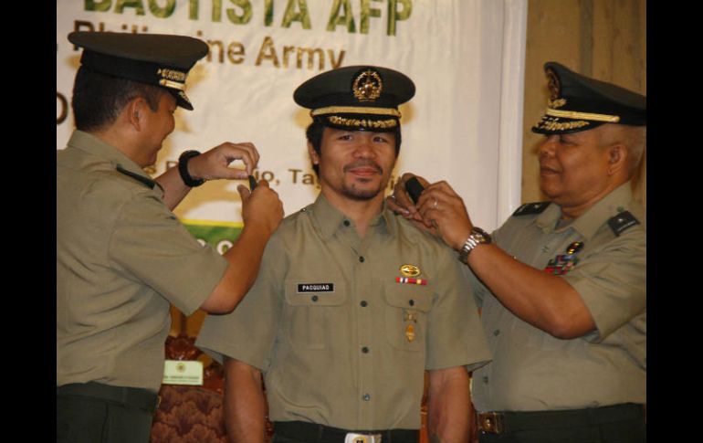 Deportes | El púgil filipino dirigirá al primer batallón de la reserva de Sarangani Promocionan a Pacquiao como teniente coronel El púgil filipino dirigirá al primer batallón de la reserva de Sarangani Por: EFE 5 de diciembre de 2011 - 08:18 hs La promoción de Pacquiao ha creado controversia en los sectores de Fuerzas Armadas que han visto favoritismo en su ascenso. REUTERS / MANILA, FILIPINAS (05/DIC/2011).- El púgil filipino Manny Pacquiao ha sido promocionado en una ceremonia oficial celebrada hoy en Manila al rango de teniente coronel en la reserva, un cargo que no le permite entrar en combate real. El actual campeón de peso welter de la Organización Mundial de Boxeo, de 32 años, dirigirá al primer batallón de la reserva de Sarangani en operaciones de catástrofes naturales. Pacquiao, también diputado, aseguró que se tomará en serio su nueva responsabilidad y prometió más victorias en el cuadrilátero y más gloria para Filipinas. El boxeador asiático, antiguo campeón del mundo de los pesos pluma, supergallo y mosca, tiene apalabrado enfrentarse al estadounidense Floyd Mayweather el próximo marzo en Estados Unidos, en lo que está considerada la pelea más importante de los últimos años. La promoción militar de Pacquiao ha sentado mal en algunos sectores de las Fuerzas Armadas que han visto favoritismo en su ascenso por la vía rápida de cinco rangos: de sargento a teniente coronel. Temas Box Boxeo Reservas Internacionales Manny Pacquiao Recibe las últimas noticias en tu e-mail Todo lo que necesitas saber para comenzar tu día Registrarse implica aceptar los Términos y Condiciones