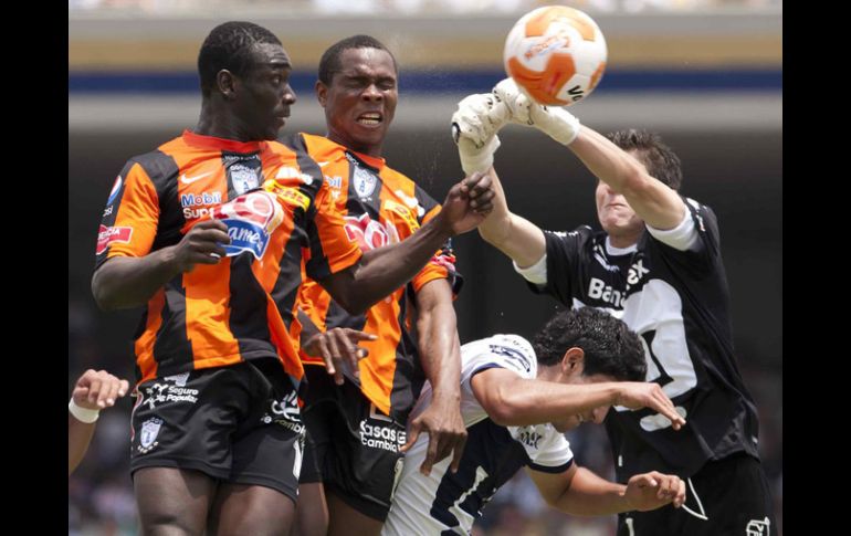 Deportes | Pachuca aprovecha el mal paso del cuadro universitario para vencerlo 1-0 Pumas no levanta en el torneo Pachuca aprovecha el mal paso del cuadro universitario para vencerlo 1-0 Por: NTX 8 de abril de 2012 - 13:25 hs Borja (centro) conecta el balón para evitar el despeje de Palacios y con ello anotó el único gol del partido. MEXSPORT / MÉXICO, D.F. (08/ABR/2012).- Pumas de la UNAM volvió a mostrar inconsistencia en este torneo y Pachuca lo derrotó 1-0, en partido de la fecha 14 del Clausura 2012 del futbol mexicano disputado en el estadio Olímpico Universitario. La solitaria anotación del triunfo fue del ecuatoriano Félix Borja, al minuto 79, para darle tres valiosos puntos a su equipo y mantenerlo en la zona de clasificación. Con esta victoria el cuadro hidalguense ascendió al quinto lugar general con 24 unidades, por arriba de Xolos (23) y en espera del resultado de América (22); Pumas, por su parte, se quedó en 12 puntos en un pésimo torneo. Ambos equipos protagonizaron un primer tiempo flojo, en el que Pumas parecía resignado con su futuro y Tuzos con el objetivo de sumar una unidad fuera de casa que lo mantuviera en zona de liguilla, de ahí que el encuentro haya resultado tedioso y con pocas llegadas de gol. Pese a tener el control de la pelota la escuadra visitante generó pocas jugadas al frente, una al minuto seis donde por izquierda Guillermo Franco bombeó el balón en la salida de Alejandro Palacios, y cuando ya se cantaba el gol Aarón Sandoval jaló la pelota hacia atrás con el pie derecho y pegó en el rostro de Efraín Velarde que por poco es autogol. Fue hasta el minuto 22 cuando Pumas tuvo su primera llegada elaborada, la cual Juan Carlos Cacho no supo terminar, pues al estar frente al arquero Rodolfo Cota voló su disparo. Cuatro minutos después el árbitro Oscar Macías y su asistente número dos Víctor Barreto no se animaron a marcar una falta dentro del área de Marco Antonio Palacios sobre Héctor Herrera, a quien recargó por la espalda. Tuzos tuvo otra clara por izquierda a pase filtrado al "Guille" Franco, quien de primera sacó zurdazo y el arquero Palacios alcanzó a sacar a una mano en un buen achique, al minuto 38. Pumas cerró el primer tiempo con dos claras llegadas sobre el marco enemigo que no pudieron concretar gracias a la buena intervención del guardameta Cota y a su zaga que estuvo atenta para despejar. Para la segunda parte la situación no cambió, pero sí se vio a un cuadro "felino" un poco más agresivo, aunque en sus pocas llegadas la figura Rodolfo Cota fue clave para su escuadra al evitar la caída de su arco en jugadas con peligro de gol. El encuentro se tornó flojo nuevamente con el transcurrir de los minutos, ninguno de los dos equipos atinaba para adueñarse con el encuentro y así pasó el tiempo hasta el 1-0 de Pachuca al 79. La jugada del gol se dio en un tiro de esquina cobrado por derecha a cargo de Francisco Torres, donde el ecuatoriano Félix Borja ganó el salto a la defensa y ante la mala salida de Palacios remató con la cabeza en el área chica para darle la ventaja a su escuadra. Sobre el final el conjunto universitario intentó cerrar en busca del empate y lo tuvo en los pies de Javier Cortés, quien buscó angular su disparo por el lado derecho de Cota, que con un gran lance volvió a evitar la caída de su arco en el minuto 88. Regular fue el trabajo de Oscar Macías, quien perdonó un penal a Pumas, escuadra por la cual también amonestó a Aarón Sandoval e hizo lo propio con Gerardo Rodríguez, Francisco Torres y Guillermo Franco, del lado Tuzo. Alineaciones: UNAM.- Alejandro Palacios, Efraín Velarde, Marco Antonio Palacios, Aarón Sandoval, Antonio García (Eduardo Herrera, 61), Luis Fuentes, Fernando Espinosa, Javier Cortés, Alfonso Nieto (Diego de Buen, 46), Juan Carlos Cacho y Emilio Orrantia (Martín Bravo, 46). DT. Guillermo Vázquez. Pachuca.- Rodolfo Cota, Gerardo Rodríguez, Javier Muñoz, Leobardo López, Néstor Vidrio, Daniel Arreola (Marco Bueno, 46), Segundo Castillo, Francisco Torres, Edy Brambila (Jaime Ayoví, 87), Héctor Herrera y Guillermo Franco (Félix Borja, 57). DT Efraín Flores. Temas Futbol Mexicano Pumas de la UNAM Tuzos de Pachuca Torneo Clausura 2012 Lee También Marruecos derrota a Argentina y es campeón del Mundial Sub-20 Bryan González, el refuerzo más destacado de Gabriel Milito en Chivas 'Hormiga' González, entre la lista de mejores goleadores de Chivas en los últimos 20 torneos ¿Cuántos partidos jugaron los futbolistas surgidos en Chivas antes de irse a Europa? Recibe las últimas noticias en tu e-mail Todo lo que necesitas saber para comenzar tu día Registrarse implica aceptar los Términos y Condiciones