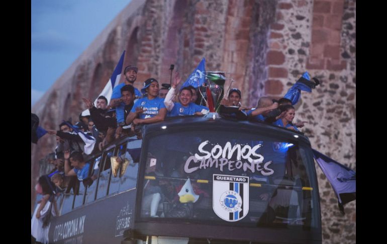 QUERÉTARO, QUERÉTARO (03/NOV/2016).- El campeón de la Copa MX Apertura 2016, Querétaro, recorrió las principales calles y avenidas de la ciudad en agradecimiento al apoyo de la afición durante el torneo. El "Gallo-bus" de color negro inició el camino en el estadio La Corregidora, donde anoche el conjunto queretano venció en tanda de penales a Chivas de Guadalajara por marcador final de 3-2. Los nombres del portero Tiago Volpi, Camilo Sanvezzo, Carlos Fierro, Jonathan Bornstein, Yerson Candelo y otros fueron coreados en todo momento por sus seguidores, quienes han mostrado fidelidad al paso de los años. El transporte inició su recorrido minutos antes de las 18:00 horas y continuó por bulevar Bernardo Quintana, los históricos Arcos de Querétaro, avenida Zaragoza, Ezequiel Montes, avenida Constituyentes y avenida Cimatario, y regresaría nuevamente al estadio. Con la Copa MX en la mano, los jugadores saludaron a la afición que tuvo que esperar 66 años, desde la fundación del club, para conseguir un título oficial en el futbol mexicano. En las calles y avenidas esperaban los fieles aficionados, entre niños, jóvenes, adultos y personas de la tercera edad, quienes enfundados en playeras de Gallos Blancos y con pancartas de apoyo querían ver aunque sea un minuto a sus ídolos campeones. El convoy del equipo campeón y un segundo camión abordado por los familiares de los jugadores, fue escoltado por un comando de la Secretaría de Seguridad Pública del municipio de Querétaro, a fin de mantener el orden.