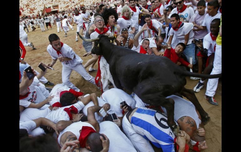 Deportes | Un jóven español y un estadounidense cayeron durante la carrera Quinto encierro en Pamplona deja dos heridos Un jóven español y un estadounidense cayeron durante la carrera Por: AFP 11 de julio de 2013 - 09:32 hs Los toros recorrieron la plaza junto a los mozos por quinta ocasión. EFE / PAMPLONA, ESPAÑA (11/JUL/2013).- Cientos de mozos volvieron a poner a prueba sus nervios este miércoles en el quinto encierro de las fiestas de San Fermín en Pamplona (Navarra, norte), en el que dos personas resultaron heridas. Un joven español, de 20 años, y un estadounidense, de 42, sufrieron diversos traumatismos en sendas caídas durante la carrera y tuvieron que ser trasladados a un hospital, informó un portavoz de los servicios médicos regionales. Otra docena más de personas fueron atendidas en el lugar de magulladuras y contusiones. A las ocho en punto, como cada mañana desde el domingo, en que tuvo lugar el primer encierro, sonó el cohete que marcaba el inicio de la carrera abriendo las puertas de los corrales ante las cuales se habían concentrado previamente los mozos, pidiendo a San Fermín con un canto que "nos guie en el encierro dándonos su bendición". La manada con los seis toros y los bueyes "mansos" que los acompañan recorrieron de forma agrupada hasta casi el final de la carrera, las estrechas calles pamplonesas abriéndose camino en un mar de corredores, la mayoría de ellos vestidos de blanco y con el tradicional pañuelo rojo al cuello. Algunos de los mozos corrieron muy cerca de los astados, incluso llegando a tocarlos, y mirando nerviosamente a los cuernos de las reses. "He ido con miedo porque los toros corrían mucho y es complicado ponerse delante de las astas", aseguró el joven Jaime Silvestre, de 26 años, que vino de Castellón (este) para participar en las fiestas por primera vez en su vida. Los toros, de la ganadería de Torrestrella, completaron los 848,6 metros del recorrido entre los corrales y la plaza de toros de Pamplona en dos minutos y 47 segundos. La manada se mantuvo compacta y junta durante casi toda la carrera hasta casi llegar al callejón que da entrada a la plaza cuando uno de los toros se quedó rezagado y aislado, causando el pánico entre los corredores. El toro se paró y se giró buscando su camino hasta que algunos mozos llamaron su atención para volver a redirigirlo hacia la plaza. Los toros que se quedan aislados pueden ser peligrosos porque pueden desorientarse y embestir. Desde 1911, un total de 15 personas han muerto en los encierros de San Fermín, la última hace cuatro años cuando un joven español de 27 años recibió una cornada en el cuello. Los seis toros se lidiarán por la tarde en el coso de Pamplona, ciudad a la que llegan visitantes de todos el mundo durante estos días para medirse a los astados o disfrutar de unos días de fiesta. Temas Toros Patrimonio Toreros Tradición Lee También Diego San Román se consagra en la tradicional “Corrida de las Luces” Isaac Fonseca busca revancha y triunfo en la “Corrida de las Luces” Día de Muertos 2025: ¿Por qué será más caro el Pan de Muerto este año? Fiestas de Octubre en Guadalajara: 60 años siendo la feria más mexicana Recibe las últimas noticias en tu e-mail Todo lo que necesitas saber para comenzar tu día Registrarse implica aceptar los Términos y Condiciones