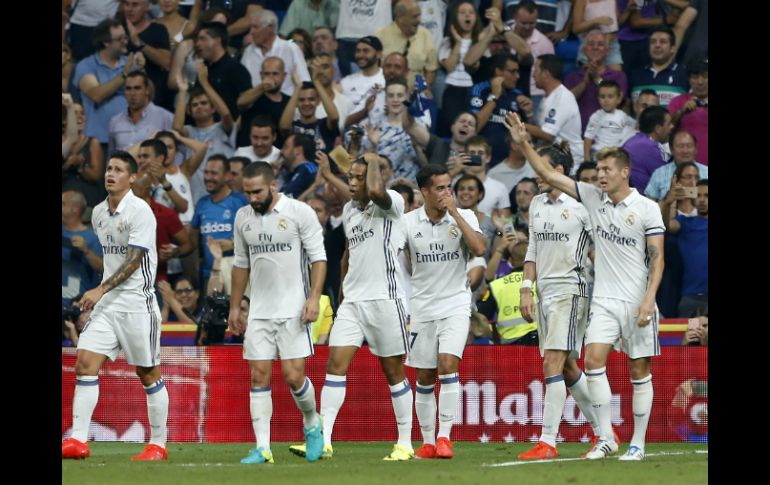 MADRID, ESPAÑA (27/AGO/2016).- El Real Madrid logró una sufrida victoria por 2-1 ante el Celta, este sábado en la segunda jornada de la Liga, en el primer partido que disputó en el Santiago Bernabéu el vigente campeón de la Champions esta temporada.Tras una primera parte equilibrada, la acción llegó en la segunda. A la hora de juego Álvaro Morata adelantó a los blancos, pero el chileno Fabián Orellana igualó en el 67.Finalmente el alemán Toni Kroos, asistido por Lucas Vázquez, logró el tanto del triunfo (81) con un preciso disparo a la base del poste desde fuera del área.Con dos victorias en dos jornadas el Real Madrid alcanza la primera plaza provisional a la espera de lo que haga el Barcelona, que el domingo tiene una complicada prueba ante el Athletic de Bilbao.El Atlético de Madrid, finalista de la pasada Champions ante su vecino y gran rival, intentará corregir su camino este sábado en la cancha del Leganés tras empatar en la primera jornada.En los otros partidos disputados este sábado la Real Sociedad venció 2-0 en el campo del recién ascendido Osasuna y el Eibar se impuso por la mínima (1-0) al Valencia.