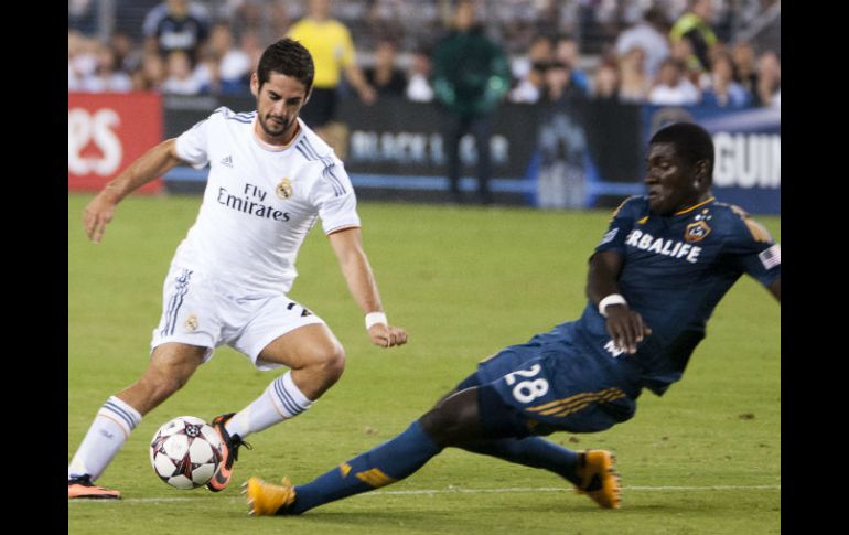 Deportes | LA recibe una visita del equipo europeo previo a la Champions Cup Real Madrid vence 3-1 al Galaxy en amistoso LA recibe una visita del equipo europeo previo a la Champions Cup Por: EFE 2 de agosto de 2013 - 08:26 hs El jugador del Real Madrid Francisco Alarcón (I) ante Kofi Opare (D) de Los Ángeles Galaxy. EFE / GLENDALE, ARIZONA (02/AGO/2013).- Karim Benzema anotó dos goles en la segunda mitad para que el Real Madrid venciera el jueves 3-1 al Galaxy de Los Angeles en el encuentro amistoso previo a la Internacional Champions Cup. El partido fue el primero del torneo internacional, donde participan otros seis equipos de Europa. El mediocampista argentino Ãngel Di María anotó el primer gol con un pase de Cristiano Ronaldo, quien se quitó a tres defensas. Más tarde, Di María agregó una asistencia. "En general, fue un buen desempeño del equipo", dijo el técnico del Real Madrid, Carlo Ancelotti. "Jugamos buen. Tuvimos una buena combinación en el frente. Tuvimos muchas oportunidades". Ronaldo tuvo varias oportunidades para anotar al inicio del partido, como en el minuto seis, cuando la pelota golpeó en la barra horizontal de la portería. El portugués también estuvo a punto de anotar en los minutos 18 y 20, mientras el defensa del Galaxy Sean Franklin hacía su mejor esfuerzo. "Sean probablemente te diría que fue increíblemente difícil", dijo el entrenador del Galaxy, Bruce Arena. "Ronaldo tiene todas las cualidades que quieres de un jugador. Técnicamente excepcional. Obviamente es un gran goleador, bueno con los pases y el dribleo. Físicamente dominante. Tiene todas las herramientas para seguir siendo uno de los jugadores más destacados en el mundo y vimos un poco de eso". La multitud de 38.922 aficionados se ponía de pie cada vez que Ronaldo tocaba el balón. La conexión Di María-Ronaldo casi produjo otro resultado a los 38 minutos, cuando Ronaldo tuvo un bastante tiempo para resolver un pase a sus pies, esquivar y tirar. Pero su lanzamiento se fue por encima de la portería. "La atmósfera era realmente fantástica y el estadio fue uno de los mejores del mundo", dijo Ancelotti. "Vamos a tener un buen recuerdo de la experiencia en el futuro". El Galaxy jugará contra el italiano Juventus, mientras que el Real Madrid avanza para enfrentarse al Everton de Inglaterra. Ambos juegos serán en el Dodger Stadium de Los Angeles el sábado. Temas Futbol Español Futbol Internacional Liga de Campeones de la UEFA Real Madrid Recibe las últimas noticias en tu e-mail Todo lo que necesitas saber para comenzar tu día Registrarse implica aceptar los Términos y Condiciones