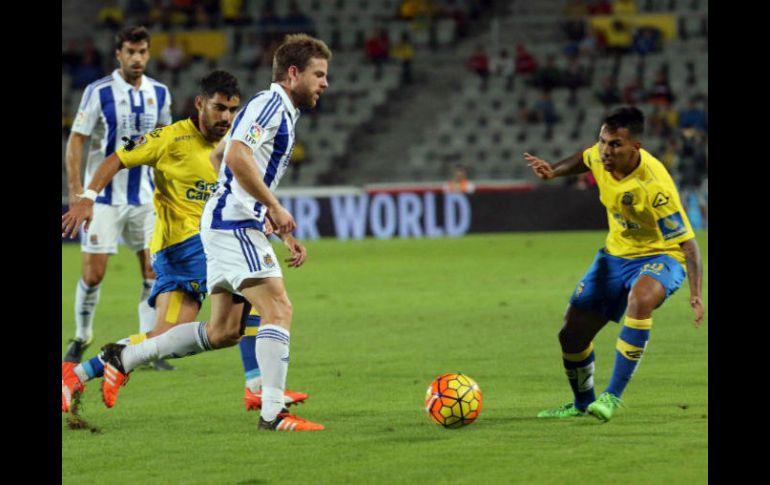 Deportes | Carlos Vela fue amonestado, se decidió su salida en el medio tiempo Real Sociedad pierde ante Las Palmas Carlos Vela fue amonestado, se decidió su salida en el medio tiempo Por: EL INFORMADOR 6 de noviembre de 2015 - 17:35 hs El cuadro canario triunfó con un marcador final de 2-0. EFE / E. Urquijo LAS PALMAS, ESPAÑA (06/NOV/2015).- Real Sociedad sigue mostrando su mal momento dentro de la Liga de España y este viernes cayó 2-0 en su visita a Las Palmas, en un encuentro en el que el mexicano Carlos Vela fue amonestado, mientras que su compatriota Diego Reyes tuvo una discreta actuación los 90 minutos. Durante el partido, correspondiente a la fecha 11 y que se llevó a cabo en el estadio de Gran Canaria, los locales salieron con la idea de conseguir las tres unidades y tratar de salir del fondo de la clasificación general. Sin embargo, los vascos también tenían la misión de salir con el triunfo para tratar de tener un sitio más decoroso en la tabla general y alejarse de los sitios de decenso con los que coquetean. La primera anotación llegó al minuto 28 luego de que Vicente Gómez bajará un centro al área Txuri-urdin que fue empujado por Jonathan Viera para vencer al argentino Gerónimo Rulli. El escocés David Moyes no podía hacer que su equipo mejorara a la ofensiva, por lo que al medio tiempo decidió hacer modificaciones, entre ellas la salida de Carlos Vela. El segundo tiempo comenzó con un ir y venir de ambas escuadras pero fue el cuadro canario quien aumentó su ventaja 2-0 gracias al tanto de Sergio Araújo al 51 de tiempo corrido. El tiempo corría y los dirigidos por Quique Setién hicieron hasta lo imposible para evitar algún daño de los de San Sebastián, con lo que al final obtuvieron su segunda victoria del torneo. Con este resultado, Las Palmas llegaron a nueve unidades parara ocupar el sitio 18 de la clasificación, mientras que la Real Sociedad se quedó en el sitio 16 con los mismos nueve puntos pero una deferencia de goles de -2 por -7 de los isleños. Tras esta derrota, la continuidad de Moyes en el banquillo donostiarra aunque se prevé que se tome la decisión en algunos días tras la pausa obligada por fecha FIFA, y en la que varios de sus jugadores tendrán acción con sus selecciones nacionales entre ellos los mexicanos Carlos Vela y Diego Reyes. El próximo partido de Real Sociedad en la liga será el 22 de noviembre cuando reciba en el estadio de Anoeta al Sevilla dentro de la fecha 12 del campeonato español. Temas Futbol Español Futbol Internacional Mexicanos en el extranjero Carlos Vela Lee También El Clásico Tapatío cambia de horario Destacan empresarios aportación de Carlos Álvarez Bermejillo No hay que ser ni pesimistas ni optimistas, hay que guardar el equilibrio: Carlos Álvarez Bermejillo Gustavo Ferraréis confía en que Atlas puede meterse al Play-In Recibe las últimas noticias en tu e-mail Todo lo que necesitas saber para comenzar tu día Registrarse implica aceptar los Términos y Condiciones