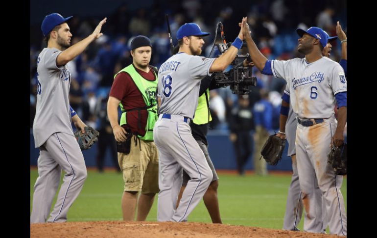 Deportes | Con 15 imparables, Kansas City arrolla a Toronto 14-2 Reales se van arriba 3-1 en serie de campeonato Con 15 imparables, Kansas City arrolla a Toronto 14-2 Por: AFP 20 de octubre de 2015 - 18:52 hs TORONTO, CANADÁ (20/OCT/2015).- Con 15 imparables, dos de ellos jonrones productores de Ben Zobrist y el boricua Alex Ríos, los Reales de Kansas City arrollaron este martes a los Azulejos de Toronto 14x2 y se fueron arriba 3-1 en la serie de campeonato de la Liga Americana de béisbol. Para el quinto partido de esta serie -al mejor de siete encuentros-, este miércoles también en Toronto, fueron anunciados el dominicano Edinson Vólquez (Reales, 1-0) y el mexicano Marco Estrada (Azulejos, 0-1). Los Reales explotaron temprano sus bates en el mismo primer inning al conseguir sencillo dentro del cuadro el venezolano Alcides Escobar, vuelacerca de Zobrist, boleto a Lorenzo Caín, un pasbol del receptor Russell Martin y elevado de sacrificio de Mike Moustakas. El equipo visitante agregó otra en el segundo por bambinazo del puertorriqueño Ríos, que provocó la salida del abridor nudillero R.A. Dickey (0-1), finalmente el derrotado. El nudillero Dickey fue sustituido por el relevista australiano Liam Hendriks. Los de casa descontaron dos en el tercero por sencillo de Ryan Goins, boleto a Ben Revere, doblete remolcador de Josh Donaldson y roletazo por el cuadro empujador del dominicano José Bautista. Posteriormente, boleto al venezolano Salvador Pérez, sencillos de Alex Gordon, el boricua Ríos, elevado de sacrificio del también llanero Escobar, un 'wildpitch', otro imparable de Caín y otro sacrificio del cubano-estadounidense Eric Hosmer le dieron a los Reales cuatro carreras más en el séptimo inning. Ese fue el primer inatrapable en el juego de Caín, quien lleva 13 partidos consecutivos de postemporada conectando de hit, un récord para el equipo de los Reales. Los Reales anotaron dos más en el noveno por hit del cubano Kendrys Morales, 'desbol' a Gordon, sencillo del brasileño Paulo Orlando e imparable de Escobar. La victoria fue para el relevista Luke Hochevar (1-0), después que el bullpen de los Reales trabajara cuatro y un tercio con cuatro hits permitidos sin carreras. En tanto, los relevistas de la novena canadiense estuvieron pésimos con nueve carreras y 11 imparables aceptados. El conjunto canadiense no va a una Serie Mundial desde 1993, cuando ganaron su segundo 'Clásico de Octubre' consecutivo. En tanto, los Reales, que en 1985 derrotaron a los Azulejos en la Serie de Campeonato de la Liga Americana y después se coronaron en la Serie Mundial ante los Cardenales, están a un juego de visitar de nuevo el 'Clásico de Otoño' por segundo año seguido, ya que el año pasado cayeron en esa instancia ante los Gigantes de San Francisco. Anotaciones por entradas: Equipos 1 2 3 4 5 6 7 8 9 C H E Reales 4 1 0 0 0 0 4 3 2 14 15 0 Toronto 0 0 2 0 0 0 0 0 0 2 7 0 Temas Beisbol MLB Serie de Campeonato de la Liga Americana Reales de Kansas City Azulejos de Toronto Recibe las últimas noticias en tu e-mail Todo lo que necesitas saber para comenzar tu día Registrarse implica aceptar los Términos y Condiciones
