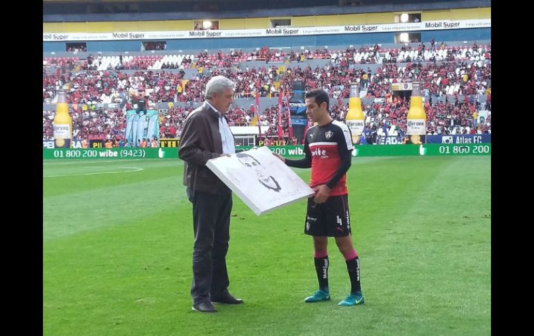 GUADALAJARA, JALISCO (15/OCT/2016).- La poca afición que estaba presente en ese momento lo ovacionó, se le entregó y no era para menos. La directiva del Atlas, en manos del vicepresidente Alberto de la Torre le entregó un reconocimiento al capitán del equipo Rafael Márquez Álvarez, ya que cumple 20 años como futbolista profesional.Este reconocimiento vino acompañado de un cuadro conmemorativo, con su rostro en blanco y negro y de fondo, en marca de agua, una imagen de la afición y del mismo "Kaiser" en sus dos épocas como futbolista rojinegro.En estos 20 años, Rafael Márquez visitó las playeras de Atlas en dos épocas, Mónaco, Barcelona, New York Red Bulls, León, Verona y por supuesto, la Selección Mexicana, siendo uno de los futbolistas más exitosos en la historia del futbol mexicano, ganando torneos de real importancia, como dos Champions League y un Mundial de Clubes, también con los culés.Es tal la importancia del capitán rojinegro, que a media semana fue invitado por el Papa Francisco a participar en un encuentro Por la Paz, en donde participaron los mejores futbolistas del mundo, activos e inactivos.EL INFORMADOR / JAVIER ROBLES