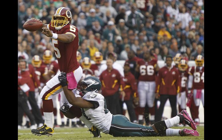 Deportes | Empate en la cima de la División Este de la Conferencia Nacional Regreso victorioso de McNabb Los Pieles Rojas vencen 17-14 a las Águiilas en el regreso de Donovan McNabb al Lincoln Finalcial Field Por: AP 3 de octubre de 2010 - 18:08 hs EL mariscal de campo de Pieles rojas de Washington, Donovan McNabb, arrastra la defensiva de Águilas. AP / FILADELFIA, PENNSYLVANIA (03/OCT/2010).- Donovan McNabb realizó suficientes jugadas para ayudar a los Pieles Rojas de Washington a derrotar el domingo por 17-12 a los Eagles en su regreso a Filadelfia. McNabb fue cambiado a los Pieles Rojas en abril después de pasar 11 temporadas con las Águilas, equipo al que condujo a cinco juegos de campeonato de la Conferencia Nacional y a un Super Bowl. Fue recibido con una ovación de pie por los aficionados al ser presentado antes del juego. Después realizó un pase para anotación y llevó a Washington (2-2) a un empate con Filadelfia en la cima de la División Este. Kevin Kolb, quien era el sucesor original de McNabb, jugó la mayor parte del encuentro después de que el mariscal de campo Michael Vick sufrió una lesión de costilla. Vick obtuvo la titularidad después de que Kolb tuvo una conmoción cerebral en el partido inaugural de la temporada. Chris Cooley atrapó un pase de 31 yardas para touchdown de McNabb, y Ryan Torain anotó en carrera de 12 yardas. Brent Celek atrapó un pase de cinco yardas para anotación por Filadelfia cuando restaban 4:10 minutos por jugar. Temas NFL Futbol Americano Águilas de Filadelfia Pieles Rojas de Washington Lee También Futbol hoy 12 de octubre de 2025: ¿Dónde ver los partidos en vivo? Chivas y América empatan en partido amistoso Nos quedamos con sensaciones cortas: Eduardo Arce Hay jugadores que no estuvieron a la altura: Javier Aguirre Recibe las últimas noticias en tu e-mail Todo lo que necesitas saber para comenzar tu día Registrarse implica aceptar los Términos y Condiciones