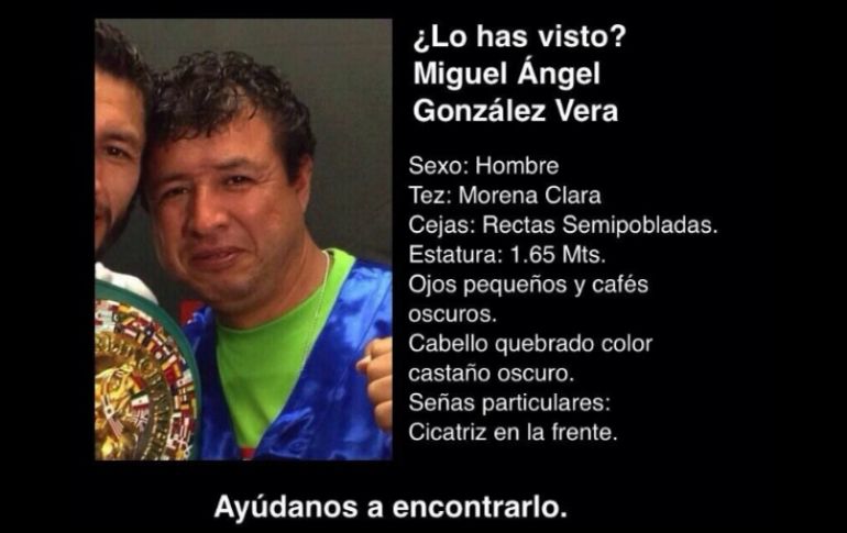 Deportes | Jhonny busca apoyo para encontrar a Miguel Ángel González también en redes sociales Reportan desaparecido a hermano de Jhonny González Jhonny busca apoyo para encontrar a Miguel Ángel González también en redes sociales Por: SUN 17 de febrero de 2014 - 13:33 hs Esta es la imagen que González comparte en Twitter para ayudar a encontrar a su familiar. ESPECIAL / CIUDAD DE MÉXICO (17/FEB/2014).- Las autoridades oficialmente han declarado desaparecido al hermano del pugilista Jhonny González. Cabe recordar que para que una persona pueda ser considerada oficialmente como persona desaparecida deben transcurrir 72 horas desde el momento de realizar la denuncia. En el boletín de desaparecido, aparece toda la información referente a Miguel Ángel González, además de las señas particulares que pueden ayudar a su identificación. Temas Box Boxeo Desapariciones y denuncias Lee También Peleas de box hoy sábado 11 de octubre: horarios y dónde ver la cartelera completa Jalisco reporta una tendencia a la baja en desapariciones La historia de Belinda y Lupillo a través de los años Gobierno federal refuerza combate a extorsión y desapariciones Recibe las últimas noticias en tu e-mail Todo lo que necesitas saber para comenzar tu día Registrarse implica aceptar los Términos y Condiciones