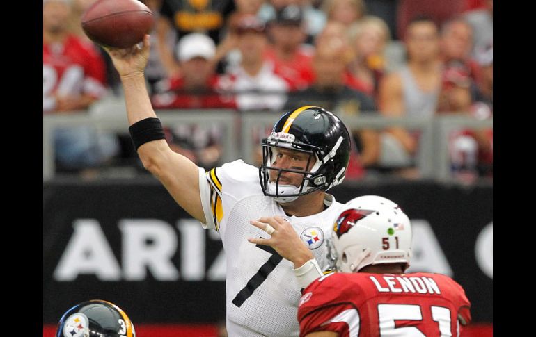 Deportes | Pittsburgh gana 32-20 a Cardenales Roethlisberger guía a Acereros a la victoria Roethlisberger terminó el día con 25 completos de 38 intentos para 340 yardas Por: AP 23 de octubre de 2011 - 18:58 hs Ben Roethlisberger envió hoy un pase de 95 yardas. AP / GLENDALE, ESTADOS UNIDOS (23/OCT/2011).- Ben Roethlisberger envió el domingo un pase de 95 yardas a Mike Wallace para establecer el récord de los Acereros con el lanzamiento más largo y Pittsburgh ganó 32-20 para propinarle a los Cardenales de Arizona su quinta derrota consecutiva. Roethlisberger terminó el día con 25 completos de 38 intentos para 340 yardas, además de los pases de anotación de 12 yardas para Heath Miller y de cuatro yardas para Emmanuel Sanders en el primer encuentro entre estos equipos desde que Pittsburgh venció 27-23 a los Cardenales en el emocionante Super Bowl del 2009. Kevin Kolb lanzó un par de pases de anotación por los Cardenales (1-5), que fueron sus primeros en tres encuentros, pero no encontró a varios receptores abiertos y con la presión en su cara de LaMarr Woodley lanzó un pase que pegó en la zona de anotación de los Cardenales y los árbitros lo castigaron con un safety al considerar que envió el balón intencionalmente al piso. Pittsburgh (5-2) ganó su tercer partido consecutivo y quedó 2-2 como visitante. Temas NFL Futbol Americano Acereros de Pittsburgh Cardenales de Arizona Recibe las últimas noticias en tu e-mail Todo lo que necesitas saber para comenzar tu día Registrarse implica aceptar los Términos y Condiciones