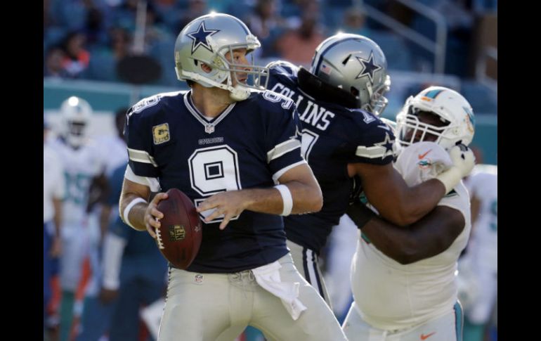 Deportes | Su retorno bastó para terminar la mala racha de Dallas al ganar 24-14 ante Delfines Romo vuelve y los Vaqueros ganan El retorno del quarterback bastó para terminar la mala racha de Dallas al ganar 24-14 ante Delfines Por: AP 22 de noviembre de 2015 - 15:47 hs Romo lanzó dos pases de anotación y completó 18 de 28 pases para 227 yardas. AP / L. Sladky MIAMI GARDENS, FLORIDA (22/NOV/2015).- Tony Romo volvió al fin tras fracturarse una clavícula, y su retorno bastó para conjurar la mala racha de los Vaqueros de Dallas, que derrotaron el domingo 24-14 a los Delfines de Miami. Romo lanzó dos pases de anotación y los Vaqueros ganaron por primera vez desde que se ausentó su quarterback estelar. Dallas (3-7) dejó atrás una racha de siete derrotas consecutivas, la más larga que ha tenido en una campaña desde 1989. Los Delfines (4-6) están en serio riesgo de perderse los playoffs por séptimo año consecutivo. Romo completó 18 de 28 pases para 227 yardas, y se sobrepuso a dos pases interceptados al lograr envíos de anotación de 31 yardas a Terrance Williams y de 16 yardas a Dez Bryant. El linebacker de Dallas, Rolando McClain anotó los primeros puntos del partido. Logró el primer touchdown en su carrera al interceptar un pase y devolver 12 yardas el balón. Miami tuvo el ovoide sólo por 21 minutos. Temas NFL Futbol Americano Delfines de Miami Vaqueros de Dallas Recibe las últimas noticias en tu e-mail Todo lo que necesitas saber para comenzar tu día Registrarse implica aceptar los Términos y Condiciones