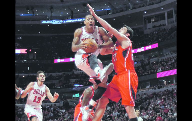ESTADOS UNIDOS (21/FEB/2012).- El base estrella de los Bulls de Chicago, Derrick Rose, regresó recuperado de los dolores en la parte baja de la espalda y anotó 23 puntos en el partido que los Bulls de Chicago ganaron por 90-79 a los Hawks de Atlanta.