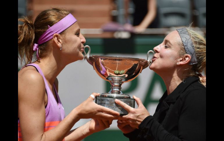 Deportes | Logran su segundo título del Grand Slam por parejas Safarova y Mattek-Sands logran el título de dobles en Roland Garros Logran su segundo título del Grand Slam por parejas Por: AFP 7 de junio de 2015 - 07:50 hs Mattek-Sands (d) y Lucie Safarova (i) besan la copa del primer lugar de parejas de Roland Garros. AFP / P. Guyot PARÍS, FRANCIA (07/JUN/2015).- La checa Lucie Safarova, que este sábado cayó en la final individual de Roland Garros, se alzó con el título de dobles junto con la estadounidense Bethanie Mattek-Sands, al derrotar este domingo en la final a la australiana Casey Dellacqua y la kazaja Yaroslava Shvedova por 3-6, 6-4 y 6-2. Dellacqua y Shvedova se habían impuesto a Safarova-Mattek-Sands en el único duelo anterior, en las semifinales del torneo de Madrid, también sobre tierra. (7-5, 3-6 (10-7), donde al final se hicieron con el título. Con el de hoy, Safarova y Mattek Sands lograron su segundo título del Grand Slam por parejas, ya que en enero habían ganado el Abierto de Australia. Temas Tenis ATP Torneo Roland Garros Torneos de tenis Lee También ¿Dónde ver EN VIVO el partido de J13 Cruz Azul vs América? ¿Dónde ver EN VIVO el partido de J13 Chivas vs Mazatlán? Djokovic iguala este récord de Federer ¿Dónde ver EN VIVO el partido de J13 Monterrey vs Pumas? Recibe las últimas noticias en tu e-mail Todo lo que necesitas saber para comenzar tu día Registrarse implica aceptar los Términos y Condiciones