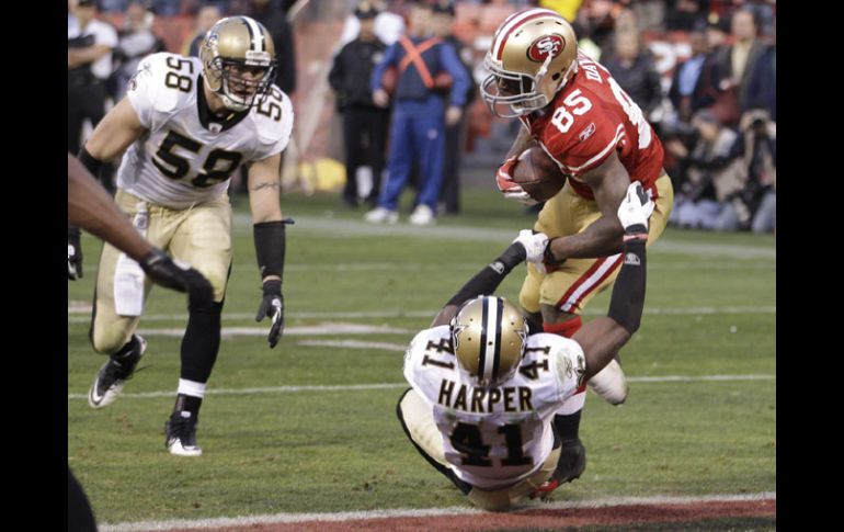 Deportes | Los 49ers vencen 36-32 a los Santos y están en la final de conferencia San Francisco elimina a Nueva Orleans Los 49ers vencen 36-32 a los Santos y están en la final de conferencia Por: AP 14 de enero de 2012 - 19:05 hs Momento en que Vernon Davis (85) atrapa el pase que le dio la victoria a los 49ers. AP / SAN FRANCISCO, CALIFORNIA (14/ENE/2012).- Alex Smith completó el sábado un pase de touchdown de 14 yardas a Vernon Davis cuando faltaban nueve segundos justo después que Drew Brees había puesto en ventaja a los Santos y los 49ers de San Francisco vencieron 36-32 a Nueva Orleans en un final infartante. Los 49ers aprovecharon las cinco pérdidas de balón que cometió Nueva Orle ans para avanzar a la final por el campeonato de la Conferencia Nacional contra el ganador del cruce del domingo entre los Gigantes de Nueva York y los locales Empacadores de Green Bay. Smith corrió 28 yardas para anotar cuando faltaban 2:11 minutos y lanzó otro pase de anotación a Davis. Los 49ers de Jim Harbaugh, campeones de la División Oeste de la Nacional con marca de 14-3, demostraron que una defensa dura aún puede imponerse en la NFL moderna de juego abierto al frenar a una de las ofensivas más dinámicas de la liga. San Francisco, equipo de historia bruñida, ganó en su primer partido de playoffs en nueve años y quedó a una victoria de volver al Super Bowl por primera vez desde que ganó su quinto título tras la temporada 1994. Los Santos de Drew Brees se fueron a casa con una marca de 14-4. Temas NFL Futbol Americano Santos de Nueva Orleans 49ers de San Francisco Recibe las últimas noticias en tu e-mail Todo lo que necesitas saber para comenzar tu día Registrarse implica aceptar los Términos y Condiciones