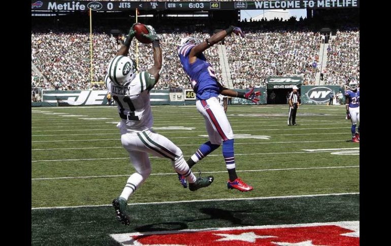 Deportes | Con tres pases de anotación, lleva a su equipo a una victoria de 48-28 sobre Bills Sánchez y la defensa brillan por los Jets Con tres pases de anotación, lleva a su equipo a una victoria de 48-28 sobre Bills Por: AP 9 de septiembre de 2012 - 15:26 hs Jeremy Kerley atrapa el primer pase de Touchdown de Sánchez en el partido. REUTERS / EAST RUTHERFORD, NUEVA JERSEY (09/SEP/2012).- Mark Sánchez lanzó el domingo tres pases para anotación, incluidos dos al novato Stephen Hill, y los Jets de Nueva York hicieron que disminuyeran las preocupaciones sobre su ofensiva con una victoria 48-28 sobre los Bills de Buffalo. Los Jets salpicaron su estrategia ofensiva con la participación de Tim Tebow, quien hizo poco. Tebow recuperó una patada corta tardía de Buffalo, y Jeremy Kerley tuvo una atrapada para touchdown y un regreso de patada para anotación. Antonio Cromartie atrapó una de las tres intercepciones a Ryan Fitzpatrick y condujo el balón hasta la zona de anotación. Fue la mayor cantidad de puntos anotada por los Jets en un partido de inicio de temporada. Esto de parte de un equipo que hizo a muchos preguntarse que esperar de ellos después de que la ofensiva de la formación titul no pudo registrar un touchdown en los tres primeros juegos de la pretemporada. Mientras tanto, Mario Williams, la gran contratación de los Bills en el mercado de agentes libres, fue controlado todo el juego por la línea ofensiva de los Jets que protegió a Sánchez. Temas NFL Futbol Americano Bills de Buffalo Jets de Nueva York Lee También México Sub-20 regresa al país tras eliminación ante Argentina Futbol hoy 12 de octubre de 2025: ¿Dónde ver los partidos en vivo? Nos quedamos con sensaciones cortas: Eduardo Arce Hay jugadores que no estuvieron a la altura: Javier Aguirre Recibe las últimas noticias en tu e-mail Todo lo que necesitas saber para comenzar tu día Registrarse implica aceptar los Términos y Condiciones