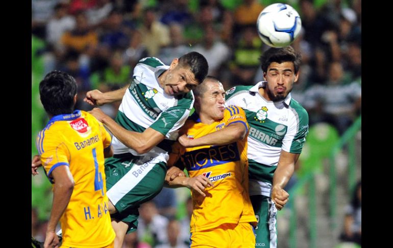 Deportes | Con dos goles de Oribe Peralta Santos vence 3-0 a los felinos Santa goleada a los Tigres Con dos goles de Oribe Peralta Santos vence 3-0 a los felinos Por: EL INFORMADOR 16 de agosto de 2013 - 22:28 hs Oribe Peralta conecta el balón de cabeza para meter el primer gol del partido. EFE / TORREÓN, COAHUILA (16/AGO/2013).- Después de ser la figura con la selección a mitad de semana, el delantero Oribe Peralta volvió a brillar ahora con el conjunto de Santos Laguna al anotar dos goles y poner otra asistencia para el 3-0 con el que ganaron a los Tigres de la UANL en el Estadio TSM. El "Cepillo" anotó al minuto 37 y al 70, mientras que al 60 puso un pase para que Néstor Calderón metida el 2-0 con el que ahora llegan a 11 puntos a la vez que mantienen el invicto, en tanto que los felinos se quedan con 6 en el arranque de la jornada seis del torneo Apertura 2013 de la Liga MX. Los "albiverdes" fueron los amos y señores del terreno de juego, hicieron sentir su casa, en este partido que ya caliente los ánimos entre aficiones, en el primer tiempo el arquero Oswaldo Sánchez prácticamente tuvo un día de campo, ya que sus compañeros fueron muy sólidos en la defensa para esperar el contra ataque. Oribe hizo el primero al minuto 37 con un remate de cabeza tras un centro al área de Jesús Escoboza, lo que adelantaba que sería la noche del ariete, quien en la semana había hecho también dos tantos ante la selección de Costa de Marfil. En el segundo tiempo, el "Cepillo" tuvo otra oportunidad al minuto 48 con un pase filtrado que lo hizo meterse hasta la cocina, sin embargo su disparo salió al centro y fue rechazado a tiro de esquina por el arquero Enrique Palos, quien evitó la debacle de un Tigres realmente inoperante en la cancha. Sin embargo en el 60, dentro del área ponía un pase retrasado a Calderón quien llegaba para fusilar al arquero y poner el 2-0, pero Oribe todavía se reivindicaría en el 70, con jugada en la que entraba solo al área para disparar raso y cruzado, con lo que dejaba a Palos sin oportunidad y concretar así el 3-0. El silbante Paul Delgadillo tuvo una aceptable labor y con las tarjetas estuvo prudente, sacó cartón preventivo para Anselmo Vendrechovski al 78 y Jesús Dueña al 36 para Santos, además expulsó a Ricardo Ferretti al 68 por enfrascarse en un altercado con el público asistente. ALINEACIONES Santos Laguna.- Oswaldo Sánchez, César Ibañez, Néstor Alejandro Araujo (Felipe Baloy, 62), Oswaldo Alanís, José Javier Abella, Juan Pablo Rodríguez, Rodolfo Salinas, Néstor Calderón, Jesús Escoboza (Javier Orozco, 89), Oribe Peralta (Marc Crosas, 84), Carlos Darwin Quintero. DT Pedro Miguel Faria(POR). Tigres UANL.- Enrique Eduardo Palos, Anselmo Vendrechovski, Jorge Emmanuel Torres, Hugo Ayala, Jesús Dueñas (Gerardo Lugo, 85), José Francisco Torres, Damián Álvarez, Danilo Verón, Manuel Viniegra (Alan Pulido, 65), Emanuel Villa, Lucas Lobos. Ricardo Ferretti. Temas Futbol Mexicano Santos Laguna Tigres Liga MX Apertura 2013 Lee También “El diablo fuma”, una dura mirada al abandono infantil en el país NFL: Resultados del Monday Night Football Futbol hoy 14 de octubre de 2025: ¿Dónde ver los partidos en vivo? Javier Aguirre asegura que realizará siete u ocho cambios ante Ecuador Recibe las últimas noticias en tu e-mail Todo lo que necesitas saber para comenzar tu día Registrarse implica aceptar los Términos y Condiciones