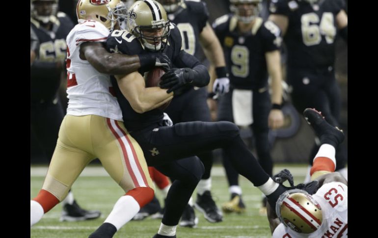 Deportes | El equipo de Nueva Orleans supera 23-20 al de San Francisco Santos vencen a 49ers en el último segundo El equipo de Nueva Orleans logra superar 23-20 al de San Francisco Por: AP 17 de noviembre de 2013 - 19:02 hs Los Santos logran sobreponerse a la desventaja que se había marcado en el partido. AP / NUEVA ORLEANS, LOUISANA (17/NOV/2013).- Marques Colston coronó una jornada de récords rotos con una recepción de 20 yardas que abrió la puerta a un gol de campo de Garret Hartley cuando el tiempo se agotaba, y los Saints de Nueva Orleans superaron el domingo 23-20 a los 49ers de San Francisco. Hartley, quien había fallado cuatro goles de campo en los tres partidos anteriores de los Santos, aprovechó sus tres oportunidades del partido dominical, todas en el último cuarto. Los dos primeros fueron de 21 y 42 yardas. Los Santos (8-2) se sobrepusieron a tres balones perdidos y a un ataque fallido en cuarta oportunidad, así como a una desventaja de 20-14. Colston totalizó cinco atrapadas para 80 yardas, con lo que se convirtió en el líder histórico de los Santos, con 7.922 yardas mediante sus recepciones. Rebasó así la marca de 7.854 impuesta hace dos décadas por Eric Martin. Colin Kaepernick completó 17 de 31 pases para apenas 127 yardas, y fue capturado en tres ocasiones. Los 49ers (6-4) sufrieron su segunda derrota consecutiva. Temas NFL Futbol Americano Santos de Nueva Orleans 49ers de San Francisco Recibe las últimas noticias en tu e-mail Todo lo que necesitas saber para comenzar tu día Registrarse implica aceptar los Términos y Condiciones