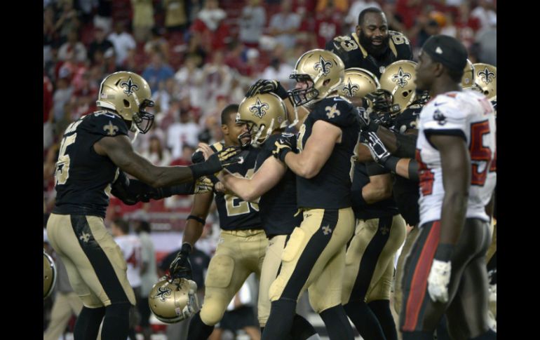 Deportes | Los Santos de Nueva Orleans se imponen a los Bucaneros 16-14 Santos vencen a Bucaneros en la última jugada Los Santos de Nueva Orleans se imponen a los Bucaneros 16-14 Por: AP 15 de septiembre de 2013 - 19:28 hs Los Santos celebran la anotación de gol de campo de Hartley que les dio una victoria más esta temporada. AP / TAMPA, FLORIDA (15/SEP/2013).- Garrett Hartley convirtió un gol de campo cuando el tiempo se agotaba, para que los Santos de Nueva Orleans superaran el domingo 16-14 a los Bucaneros de Tampa Bay, en un encuentro interrumpido por una tormenta eléctrica. Drew Brees se recuperó luego de ver interceptado uno de sus pases, en una jugada en que Tampa Bay se llevó el ovoide hasta la zona prometida y tomó la ventaja. El mariscal de los Santos completó tres pases seguidos para un avance de 54 yardas, lo que puso a los Santos (2-0) en posición de hacer el gol de campo y de llevarse la victoria. Brees completó 26 de 46 envíos para 322 yardas, pero fue capturado en cuatro ocasiones, y los Bucaneros le interceptaron dos de sus lanzamientos. La tormenta eléctrica obligó a interrumpir el partido durante una hora y nueve minutos, en el primer cuarto. Los Bucaneros (0-2) cayeron por un gol de campo en los últimos segundos por segunda semana consecutiva. El linebacker Mason Foster anotó tras interceptar un pase y devolver el balón 85 yardas, para poner el marcador 14-13. Sin embargo, Rian Lindell falló un intento de gol de campo de 46 yardas, un minuto después, lo que le dio a Brees una oportunidad más de buscar el triunfo. Temas NFL Futbol Americano Santos de Nueva Orleans Bucaneros de Tampa Bay Lee También Futbol hoy 12 de octubre de 2025: ¿Dónde ver los partidos en vivo? Nos quedamos con sensaciones cortas: Eduardo Arce Hay jugadores que no estuvieron a la altura: Javier Aguirre César Montes intenta justificar la goleada ante Colombia Recibe las últimas noticias en tu e-mail Todo lo que necesitas saber para comenzar tu día Registrarse implica aceptar los Términos y Condiciones