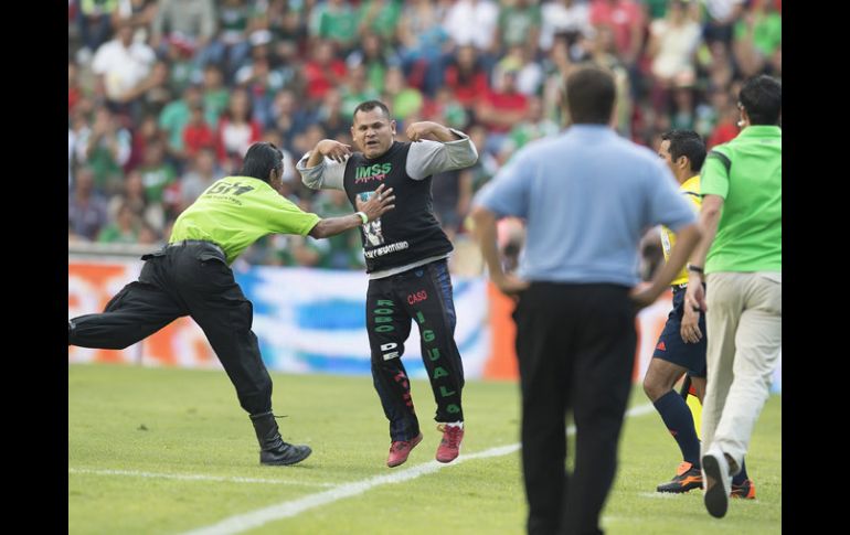 Deportes | Otro aficionado se mete al campo, en pleno partido, de la Selección mexicana Segundo incidente con el Tri Otro aficionado se mete al campo, en pleno partido, de la Selección mexicana Por: EL INFORMADOR 12 de octubre de 2014 - 16:46 hs El aficionado que se metió a la Corregidora fue directo a la zona de bancas para ser más notorio. MEXSPORT / O.Martínez QUERÉTARO, QRO. (12/OCT/2014).- Un aficionado se metió al terreno de juego del Estadio La Corregidora al minuto 50 y en sus ropas se alcanzaba a leer una protesta contra al Instituto Mexicano del Seguro Social (IMSS) y por el caso Iguala y poco después fue retenido por los elementos de seguridad del inmueble. Así este es el segundo incidente en un partido de la Selección mexicana de futbol, el primer de ellos fue el pasado jueves por la noche cuando un aficioando entró y le pidio su autografo al portero Guillermo Ochoa. Esto aunado a algunos incidentes en los estadios mexicanos durante el torneo local podría dar origen a nuevos protocolos de seguridad. Temas Futbol Mexicano Selección mexicana FMF Partidos amistosos Recibe las últimas noticias en tu e-mail Todo lo que necesitas saber para comenzar tu día Registrarse implica aceptar los Términos y Condiciones