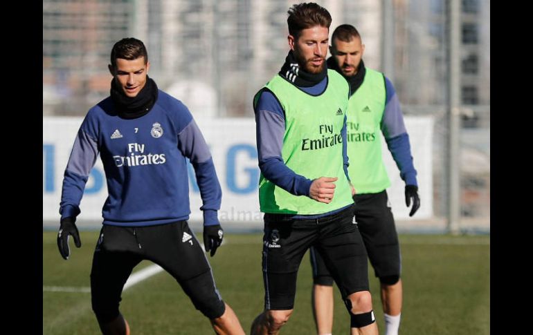 MADRID, ESPAÑA (09/ENE/2017).- El defensa Sergio Ramos, ausente en las últimas convocatorias por problemas musculares, trabajó ya este lunes con el resto del grupo, en la vuelta de la primera plantilla del Real Madrid a los entrenamientos, para preparar el partido ante el Sevilla, vuelta de los octavos de final de la Copa del Rey.Sergio Ramos, que no estuvo el último martes ante el Sevilla, en la ida copera, ni el sábado ante el Granada, en liga, fue la principal novedad de una sesión que también contó con la presencia de Enzo Zidane, jugador del Real Madrid Castilla.La sesión preparatoria madridista también vio a los lesionados Lucas Vázquez y Mateo Kovacic ejercitándose de "forma específica" con balón sobre el césped, según informa el club, y a Isco trabajando en el interior de las instalaciones.Los lesionados de mayor duración, como el galés Gareth Bale y el portugués Pepe, siguen con su respectivo proceso de recuperación.Tras el entrenamiento, varios jugadores de la primera plantilla, incluido el técnico Zinedine Zidane, se desplazaron a Zúrich para asistir esta misma tarde a la primera gala de la FIFA "The Best", donde se premiará, entre otros galardones, al Mejor Esntrenador y al Jugador Mundial de 2016.Una gala en la que optan Cristiano Ronaldo al premio "The Best" como Mejor Jugador, y Zinedine Zidane al de "Mejor Técnico".También optan, entre los 55 finalistas candidatos, a estar en el "Once Ideal de 2016" los madridistas Sergio Ramos, Marcelo, Luka Modric, Toni Kroos, Dani Carvajal, Pepe, Raphael Varane, Keylor Navas, Bale y Karim Benzema.El Real Madrid volverá a los entrenamientos este martes, en una sesión con inicio fijado para las 11.00 horas locales (10.00 gmt), en su Ciudad Deportiva de Valdebebas.
