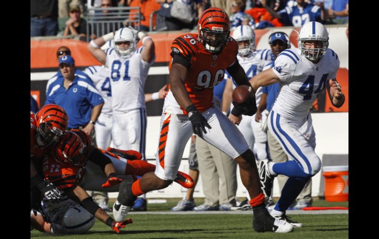 Deportes | Bengalíes hicieron de su encuentro la derrota de Potros al superarlos 27-17 Sigue sin probar el triunfo Indianápolis Bengalíes hicieron de su encuentro la derrota de Potros al superarlos 27-17 Por: AP 16 de octubre de 2011 - 16:14 hs El 'Bengalíe' Carlos Dunlap (96) en acción durante la segunda mitad del encuentro. AP / CINCINNATI, OHIO (16/OCT/2011).- Nate Clements bloqueó un intento de gol de campo que hubiera empatado el encuentro, Carlos Dunlap regresó 35 yardas un balón suelto de los Potros para la anotación crucial, y los Bengalíes de Cincinnati mantuvieron sin triunfos a Indianápolis al vencerlo el domingo 27-17. Los Bengalíes (4-2) igualaron su número total de victorias de la temporada pasada y pusieron fin a una racha de siete derrotas consecutivas frente a Indianápolis, que nunca había perdido frente a Cincinnati con Peyton Manning como quarterback. Manning estuvo en la banca, sin poder hacer nada para impedir que los Potros cayeran a 0-6 por quinta ocasión en la historia del equipo. Curtis Painter guió a Indianápolis para recuperarse de un déficit de 20-7 en la segunda mitad, colocando a los Potros en posición para que Adam Vinatieri intentara un gol de campo de 52 yardas que habría empatado el partido cuando faltaban 5:38 por jugarse. Pero Clements lo bloqueó. Luego de que los Bengalíes fallaran un gol de campo, a Pierre Garcon le arrancaron la pelota luego de una recepción y Dunlap corrió hasta anotar. Temas NFL Futbol Americano Bengalíes de Cincinnati Potros de Indianápolis Recibe las últimas noticias en tu e-mail Todo lo que necesitas saber para comenzar tu día Registrarse implica aceptar los Términos y Condiciones