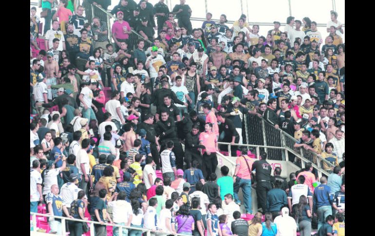 Deportes | Los pleitos entre barras cada vez son más frecuentes, un fenómeno que requiere atención Sin control la violencia en el futbol mexicano Los pleitos entre barras cada vez son más frecuentes, un fenómeno que requiere atención, pues falta coordinación entre liga, clubes y autoridades Por: EL INFORMADOR 26 de septiembre de 2012 - 03:45 hs El domingo pasado, elementos de seguridad privada del Omnilife se metieron a la barra de Pumas para retirar a unos de sus integrantes. / GUADALAJARA, JALISCO (26/SEP/2012).- Primero fueron la gran novedad del futbol mexicano, con sus cantos y esa forma peculiar de apoyar a sus equipos. No transcurrió mucho tiempo para que pasaran a los pleitos con los rivales. Hoy, ya se reportan heridos tanto con arma blanca, como con arma de fuego. Son las barras del futbol mexicano que, a comparación de su símil en Argentina, hasta parecen inocentes. La violencia de estos grupos crece en proporción al desinterés de la Femexfut por el tema. A la fecha, no hay en el organismo quien se encargue específicamente de este asunto, pues todo se constriñe a esfuerzos individuales de los equipos y las autoridades locales. Tampoco se retomó lo que ya se había avanzado en esa tema durante la administración de Alberto de la Torre, quien designó a Alberto Reyes como jefe del departamento de logística y seguridad de la FMF. Reyes Santa es quizá la persona que más sabe del funcionamiento de las barras en México, pues mantuvo contacto con los principales grupos en todo el país e incluso, a la fecha, barristas que vienen a Guadalajara a apoyar a sus equipos, mantienen contacto con Alberto ya sea para información sobre a quién dirigirse al llegar a la ciudad, o simplemente saludarle. — ¿Cómo trabajaste el tema de las barras? — Creo que se hizo algo muy importante que fueron los congresos de barras. El primero fue antes de que llegáramos, pero se le dio continuidad y eso fue fundamental para detectarlos, conocerlos. Hubo uno más en Zapopan y otro en Acapulco donde incluso se habló de formar una asociación civil. Fue muy importante conocerlos y escucharlos; incluso arreglábamos conflictos como el robo de trapos (mantas), cosa que hoy, eso se arregla a golpes en la siguiente visita del equipo ofendido u ofensor. — ¿Cuáles son las más peligrosas? — Habría que clasificarlos por su filosofía, o la cantidad de gente que manejan. Las barras de Pumas son muy numerosas y aparte su filosofía es “yo voy a apoyar a mi equipo, pero a la primera provocación voy a reaccionar violentamente”. A La Barra 51 se les cuelan muchachos que no tienen nada que ver con ellos y que son los que causan los desmanes. La Barra Libres y Lokos escogen un partido del calendario para hacer lo que ellos llaman la visita masiva, y una de esas visitas causó muchos problemas en Guadalajara. Pero también hay clubes que trabajan muy bien, como Chivas, que tiene credencializados a sus barristas, con un control muy estricto y sanciones internas muy fuertes. — ¿Llegaron a detectar delincuentes dentro de las barras? — En Monterrey tuvimos muy buena coordinación con la policía local. Teníamos un banco de datos donde detectamos gente que recurrentemente cometía ilícitos. Teníamos nuestro álbum, lo repartíamos a la policía, y si encontrábamos a ese joven en la fila para entrar al estadio no se le permitía el acceso. Hoy ya es necesario que se coordinen seguridad privada, policías municipales y clubes. — ¿Está bien legislado este tema? — Ése es otro de los asuntos que tendríamos que ventilar, en países de Europa, por ejemplo, se tipifica como delito grave aventar una botella a la cancha, pero esto va más allá. Aquí, cuando un barrista comete una falta administrativa, la policía, cuando mucho, lo retira del lugar, rara vez los remiten y cuando lo hacen, muchas veces pasa que llegan, pagan su multa, y hasta alcanzan a regresar al estadio. Sin embargo, Reyes Santa admite aciertos de la nueva administración. “Algo muy importante que hizo Decio de María fue la restricción para ingresar las mantas, o trapos como ellos le llaman; los trapos son insignias y robarse un trapo para luego sacarlo durante un partido, detonaba mucha violencia. De momento, los incidentes entre barristas rivales e incluso del mismo grupo no se han registrado muertes por riñas ni en el interior de algún estadio, ni en los perímetros de los cosos, y tampoco en hechos registrados en los trayectos a los cotejos que tengan que ver con enfrentamientos. “Se han vuelto más violentos” Las policías municipales de Guadalajara y Zapopan, que resguardan los estadios Jaliscos y Omnilife, respectivamente, coinciden en que los barristas cada vez son más problemáticos. Antonio Munguía, comandante del Grupo Lobos y encargado de custudiar el Estadio Jalisco, relata que los problemas comienzan prácticamente desde que las barras visitantes llegan a la caseta de Zapotlanejo. “Ya cuando los recibimos en las casetas viene drogados y alterados. Nuestra función es controlarlos desde que llegan, hasta que los llevamos a la salida de Guadalajara”. Munguía reconoce que, de momento, no le ha tocado decomisar pistolas. “Armas de fuego no hemos localizado, por lo general la revisión se hace en compañía de un representante de su autobús, puede ser el dirigente de la barra o el mismo chofer, y se les aseguran botellas de vidrio, latas, galones de alcohol, navajas y puntas que puedan traer”. En la policía de Zapopan opinan igual. “Creo que se ha vuelto más violento por parte de algunos equipos, de momento es controlable, faltarían sanciones más severas para inhibir este tipo de delitos”, aseguró el comandante Jorge Mercado, encargado del operativo de seguridad del Estadio Omnilife. Las manchasIncidentes más lamentables Luto en América Febrero de 2008: Julio César, barrista de La Monumental, muere al golpearse con la pared del túnel de Vallarta e Inglaterra. La muerte del