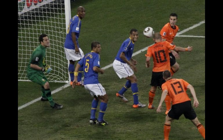 Deportes | Considera este momento mágico tras eliminar a Brasil Sneijder duda volver a anotar de cabeza El seleccionado de Holanda fue el mejor jugador del enfrentamiento de cuartos de final, por haber anotado los dos goles del triunfo ante los brasileños Por: EFE 2 de julio de 2010 - 10:48 hs Acción del gol que anotó con un remate de cabeza por parte del holandes Wesley Sneijder. AP / PUERTO ELIZABETH SUDAFRICA.- El centrocampista del Inter italiano Wesley Sneijder, mejor jugador del partido que clasificó a Holanda a los cuartos de final de Mundial a expensas de Brasil, marcó hoy el primer gol de cabeza en su carrera, pero advirtió que duda de que vuelva a repetir. El ex jugador del Real Madrid mide 1,70 metros, según los registros de la FIFA, pero da la sensación de tener, al menos cinco menos, y hoy se convirtió en héroe al firmar la remontada de Holanda por 2-1, en el partido que puso a Brasil de vuelta a casa. "Este es un momento magnífico. Eliminar a Brasil, uno de las mejores equipos en la Copa del Mundo, es algo notable. También transmite una sensación de alivio, superar a una defensa muy buena", declaró el talentoso jugador, que el 9 de junio pasado cumplió 26 años. "Estoy muy contento por pasar a las semifinales. Fue mi primer gol de cabeza, pero pienso que no volverá a ocurrir", puntualizó. Temas FIFA Selección de Brasil Mundial de Sudáfrica 2010 Selección de Holanda Recibe las últimas noticias en tu e-mail Todo lo que necesitas saber para comenzar tu día Registrarse implica aceptar los Términos y Condiciones